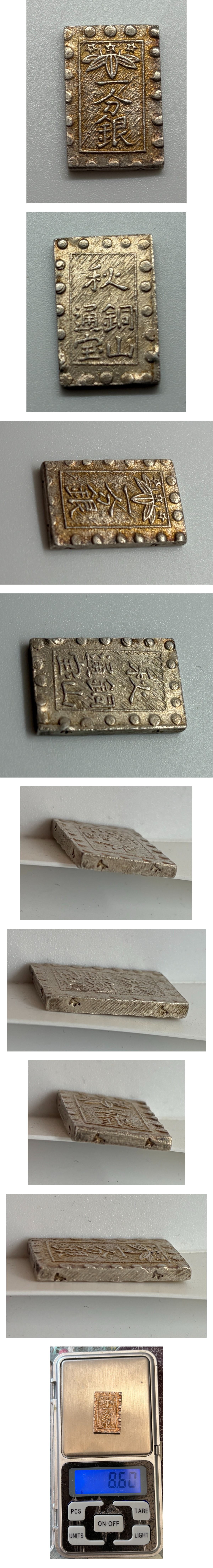 | 秋田笹一分銀 8.60g 上字刻印 地方貨 銅山通宝 軽トーン |