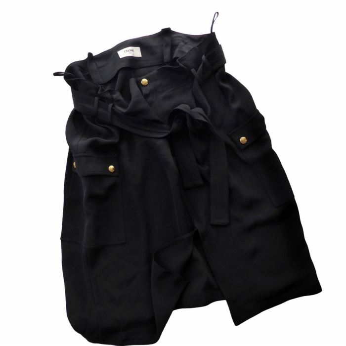 | セリーヌ(CELINE) トリオンフ シルク スカート タック ベルト 40 ブラック 2J478010R ウェア(中古) |