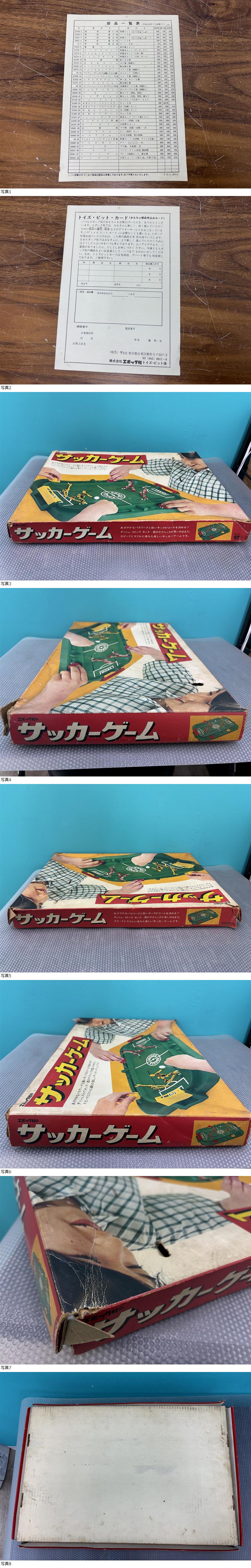 出品の商品は 21543-3★エポック社のサッカーゲーム ボードゲーム 昭和レトロ 当時物 になります。 出品詳細を最後まで読んで頂き、入札をご検討下さい。 ・画像で詳細・状態をご確認ください。 ・頂き物です。 ・長期間自宅保管品です。 ・元箱に経年による傷みがあります。 ※傷、汚れ、破れなど ・付属品は全て揃っていると思います。 ※画像に全て載せてますのでご確認をお願いします。 ・全て現状品渡しになります。 ・ご確認したい点があれば、質問よりご連絡ください。 専門知識が必要なご質問にはお答え出来ない事もありますが、可能な限りご返答させて頂きます。 ・画像が全てとなりますので掲載画像をご覧の上ご判断頂きご入札をお願い致します。 | ||||