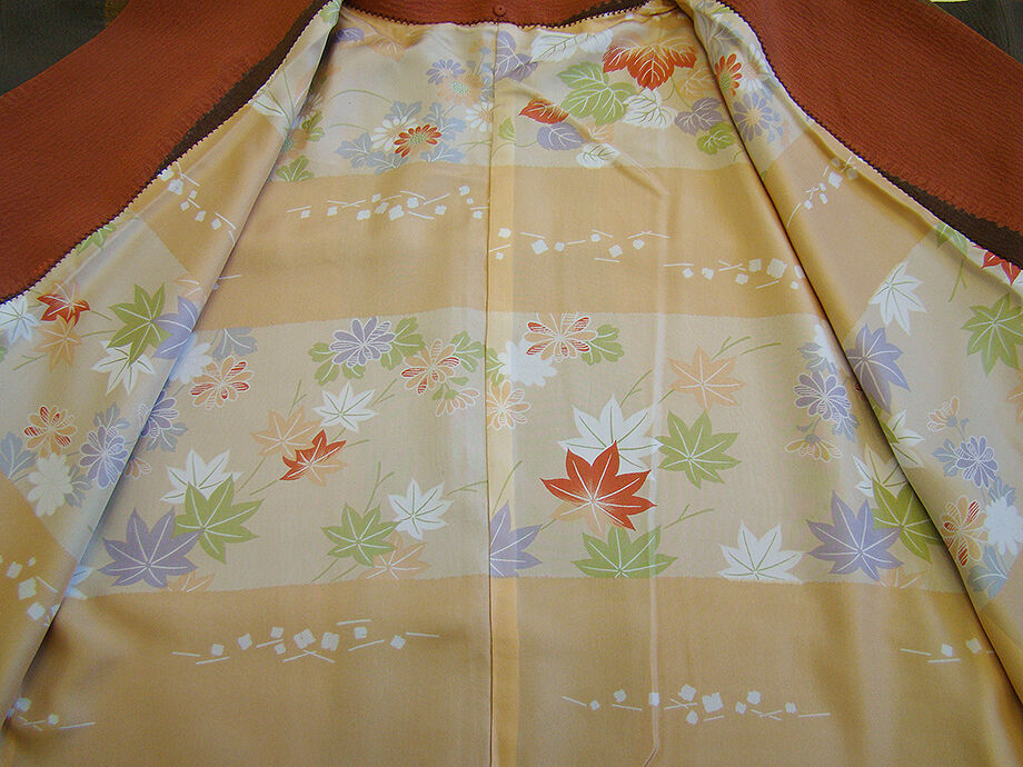 | 商品説明 | とてもしなやかで柔らかなふっくらぽってりとした着心地良い重めの極上ちりめん地の生地。 茶、土、黄土、渋い山鳩色等のぼかし染、 お洒落な裏地も正絹。 手縫い仕立て。 |