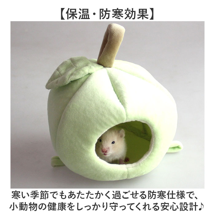 | 商品説明 | ・・【あったかハウス】 ・可愛いりんご型で小動物が快適に過ごせる保温ハウス。 ・【保温・防寒効果】 ・寒い季節でもあたたかく過ごせる防寒仕様で、小動物の健康をしっかり守ってくれる安心設計♪ ・【安心の隠れ家空間】 ・ストレスを感じやすい小動物が安心してくつろげる、プライベート空間を提供する優秀アイテム◎ ・【適切なサイズ設計】 ・ハムスターやフクロモモンガにぴったりのコンパクトサイズで、ケージ内にすっきり収まる仕様! ・【可愛いりんご型】 ・キュートなりんご型デザインがペットのおうちを華やかに演出し、見ているだけで癒される可愛さ〇 ・【ふわふわ素材採用】 ・ベルベットのふわふわな質感で、ペットが心地よく眠れる快適な環境を実現する一品。 ・【落下防止設計】 ・ケージ内でしっかり固定できる構造だから、ペットが安全に過ごせて飼い主も安心できる優秀仕様◎ |