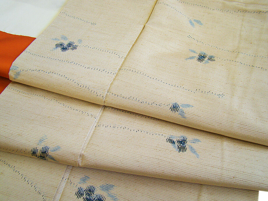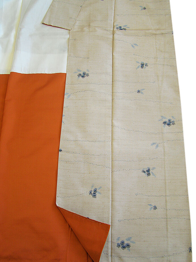 | 商品説明 | こちらのお品は「袷」ですので10月から5月までお召頂ければと思います。 しなやかな紬は、着易く動きも軽く、着くずれしない腰の強さを併せ持った お洒落着としていつでもどこへでもお気軽にお愉しみ頂けご愛用頂けるお品です。 しなやかな手触りのシャリやハリ感ある肌触りも心地よい柔らかな紬地、 白橡色地にグレー、藍、水色等の織柄、 八掛は煉瓦色(正絹)、裄長め、幅広い年代の方にお召頂けます。 |