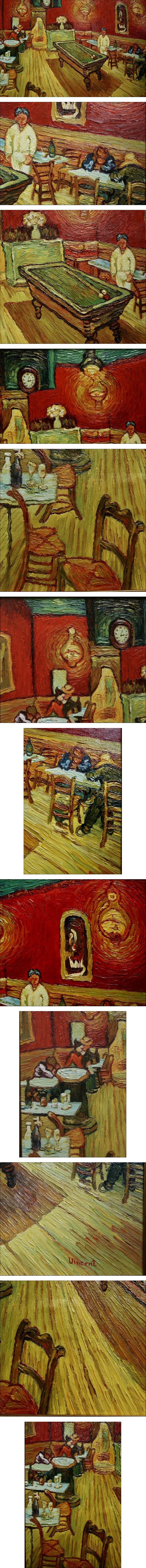| 商品説明 | ファン・ゴッホの油彩/キャンバスの肉筆原画です。1888年にアルルで描いた「The Night Cafe(夜のカフェ)」(油彩/キャンバス、89 x 70cm、写真参照)の習作として描いた一枚と思われます。筆致、構図、色調とも本作に近い作品です。右下にサインが書かれています。パリのオルセー美術館の認証票(作品概要が記載)が付属し真作であることを示しています。経年のわりに保存状態は良好です。 なお、額縁は古い木製のものでガラス等のカバーはありません。落札者でアクリルの額装をご希望の方はお知らせください。取引先の額縁専門店に製作を依頼ます。実費のみ頂きます。 制作年:1888年 作品サイズ:約40 x 50cm 額縁サイズ:約48 x 58cm <注意事項>**必ずお読みください。下記の事項に同意された方のみ入札してください。**・後のトラブル防止のため、新規の方、悪い評価が全体の5%以上ある方、および落札者の都合によるキャンセル歴が3回以上ある方は入札をお断りします。入札された場合は分かり次第入札を取り消しさせていただきます。新規の方で、どうしても入札したいと言う方は、質問欄に氏名、住所、電話番号をお知らせ下さい。(回答はしないので公開はされません) |
