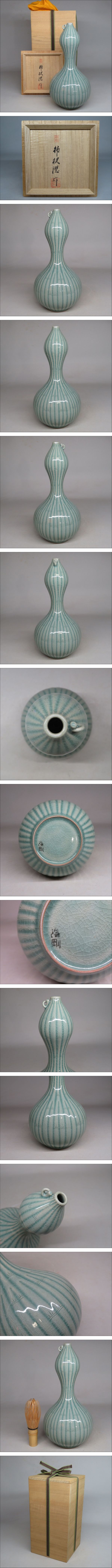 | 柳海剛 韓国人間文化財(柳根瀅) 高麗青磁 竹節紋瓢箪瓶 韓国 人間国宝 柳海剛 ◆李朝/高麗 海剛 | |||