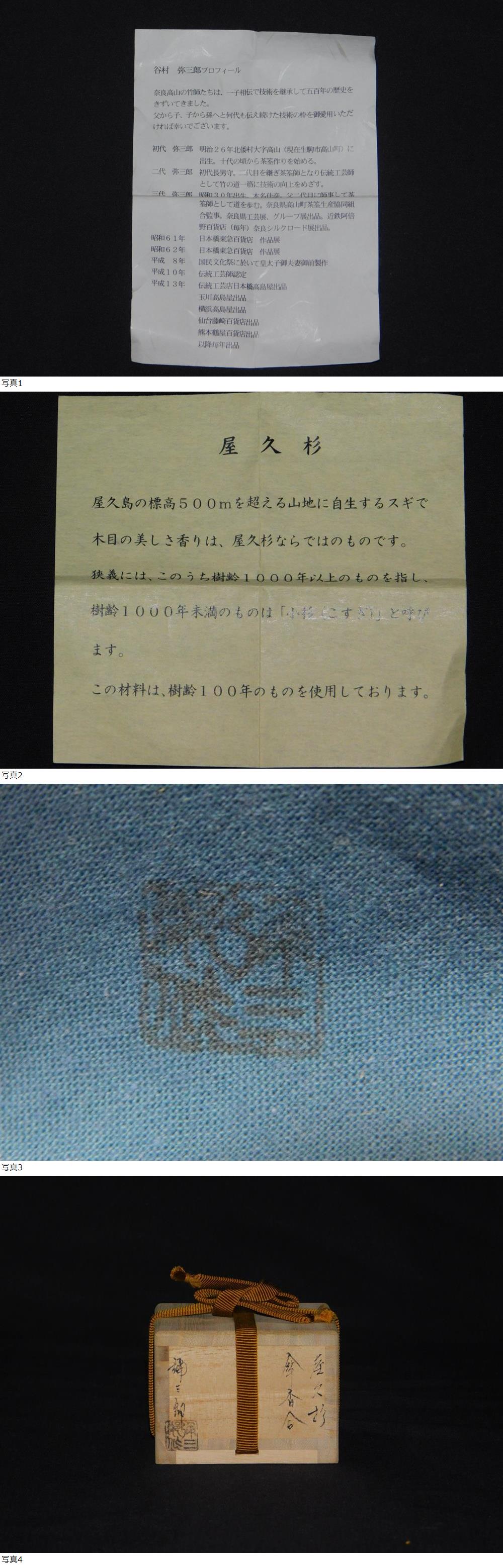 奈良高山谷村弥三郎作の傘香合 屋久杉です。 一見してヒビ・カケ等ございませんが、 中古品の為、画像にてご判断の上、御入札ください。 状態は良好・美品です。 【寸法】 口径3㎝、巾6.5㎝、高2.6㎝ 【付属品】 ■箱:共箱■共布:有■作歴:有■ こちらの商品は送料無料です。 発送は下記表を参考に佐川急便・ヤマト運輸からお選び下さい。 沖縄県に関してはヤマト運輸のみの取り扱いとなります。 また、梱包サイズが220以上の場合は佐川急便のみの取り扱いとなります。 同梱発送をご希望の場合は、ご連絡頂ければ対応させて頂きます。 只、梱包サイズが変更する場合もございます。 |