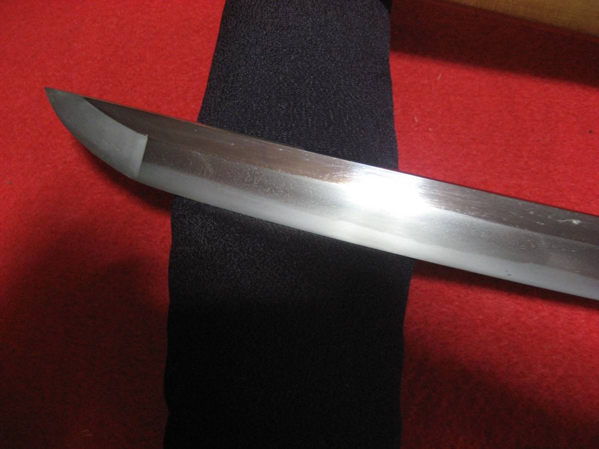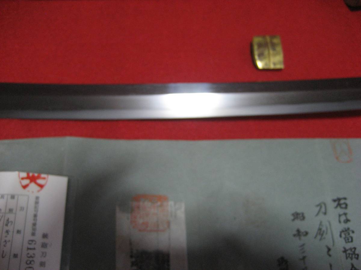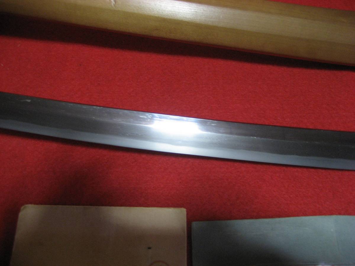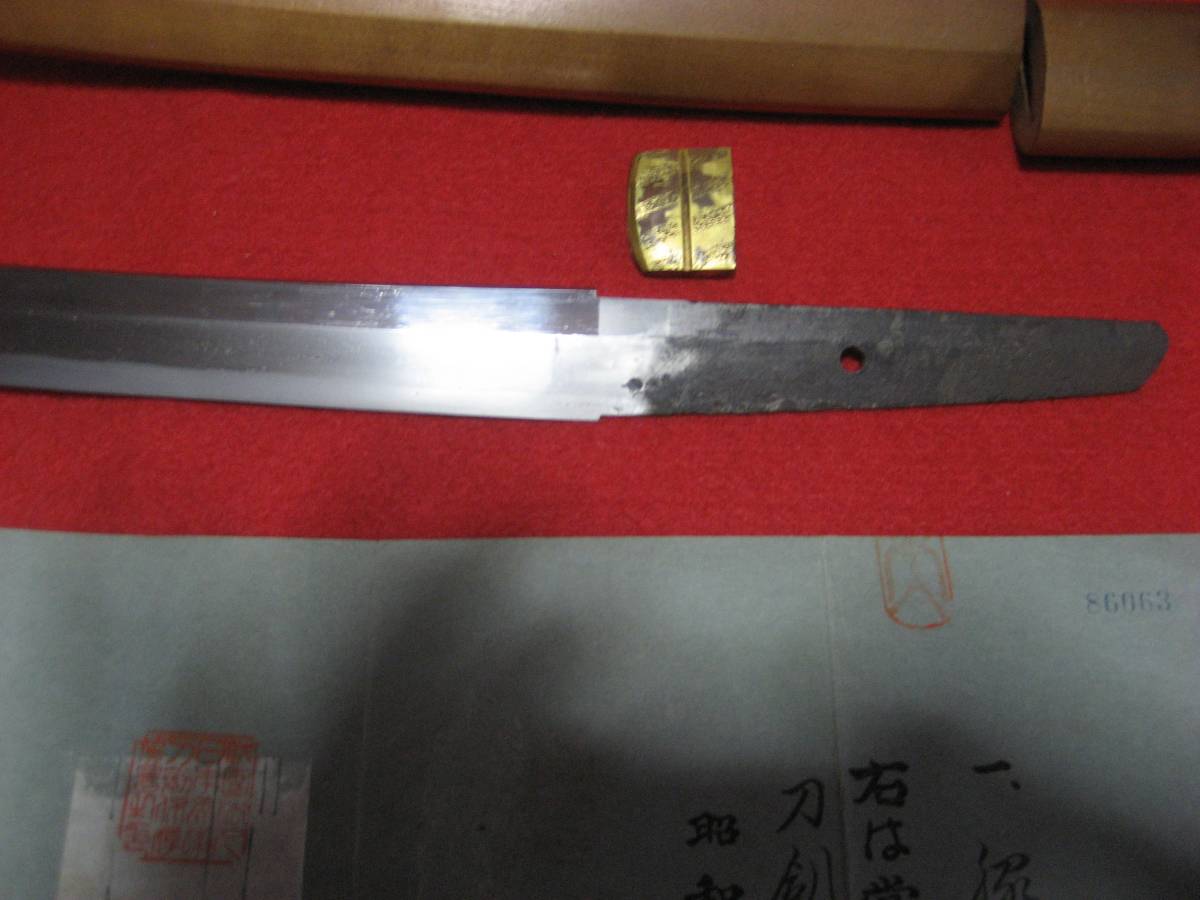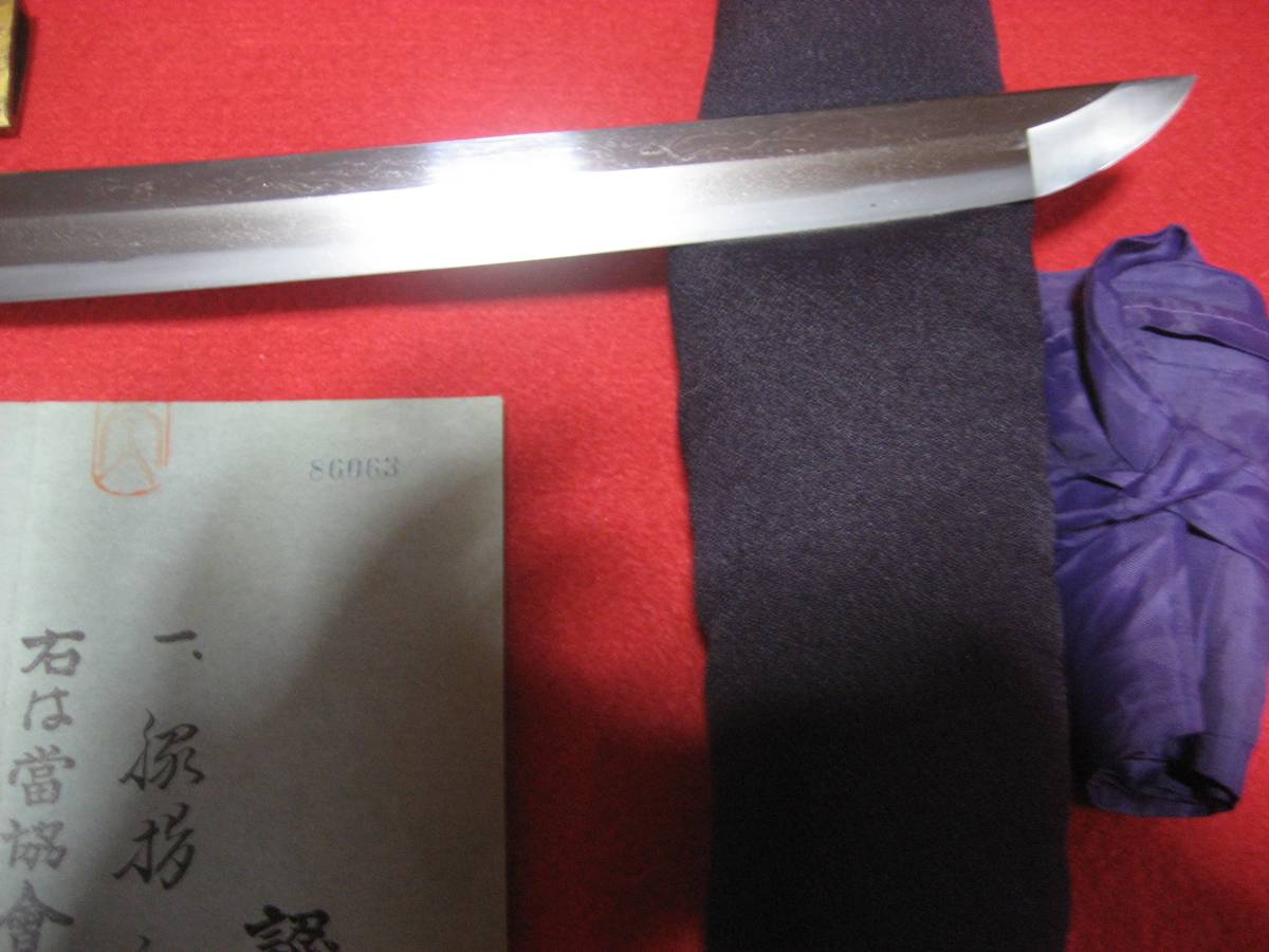種別脇差し長さ51,8センチ反り0,6センチ目釘穴1個銘無銘 鑑定書に付き特別貴重刀剣につき貞国元幅 2,99センチ元重5,6ミリ先幅2,17センチ先重4,4ミリ状態見事刃紋でて地肌も見事です無論研ぎ上がりのような極上脇差しです。詳しくは、写真参照でお願いします。 骨董品につきノンクレームノンリターンで御願いします。 落札後48時間以内連絡できる方1週間以内で入金できる方入札待ってます。 即決売済となった場合は、やむなく取下げさせて頂く事がございます。ご了承ください。 ●終了の翌日正午までに、お取引詳細とご挨拶のメールを送信させていただきますので、必ずご確認下さいます様お願いいたします。 ●キャンセル、返品はお受けできませんので、写真を良くご確認の上ご入札をお願いいたします。 ※登録証が付いておりますので、特別な手続き無しで所持できますが、落札者は、落札して購入後、銃砲刀剣類所持等取締法にもとづき都道府県の教育委員会に所有者変更の届出が必要です。刀剣所持者変更を落札者が必ず行ってください。