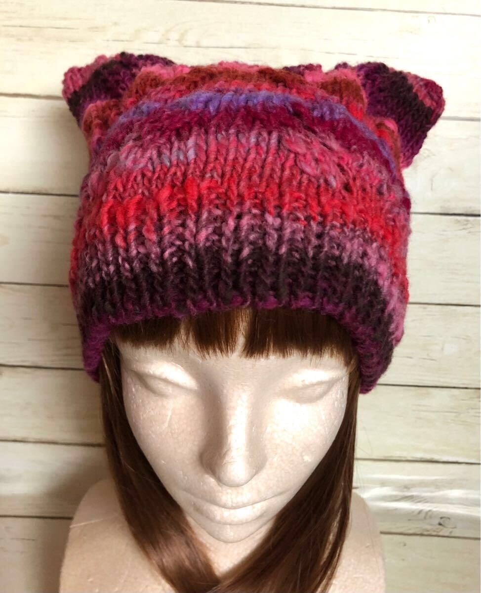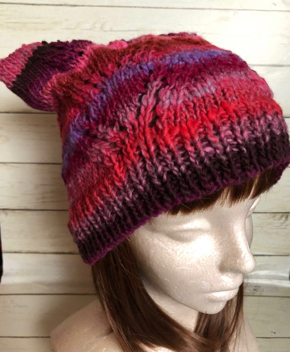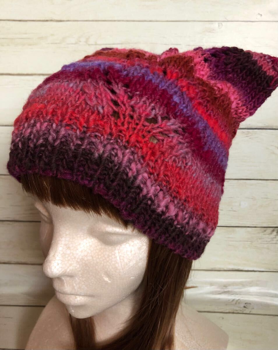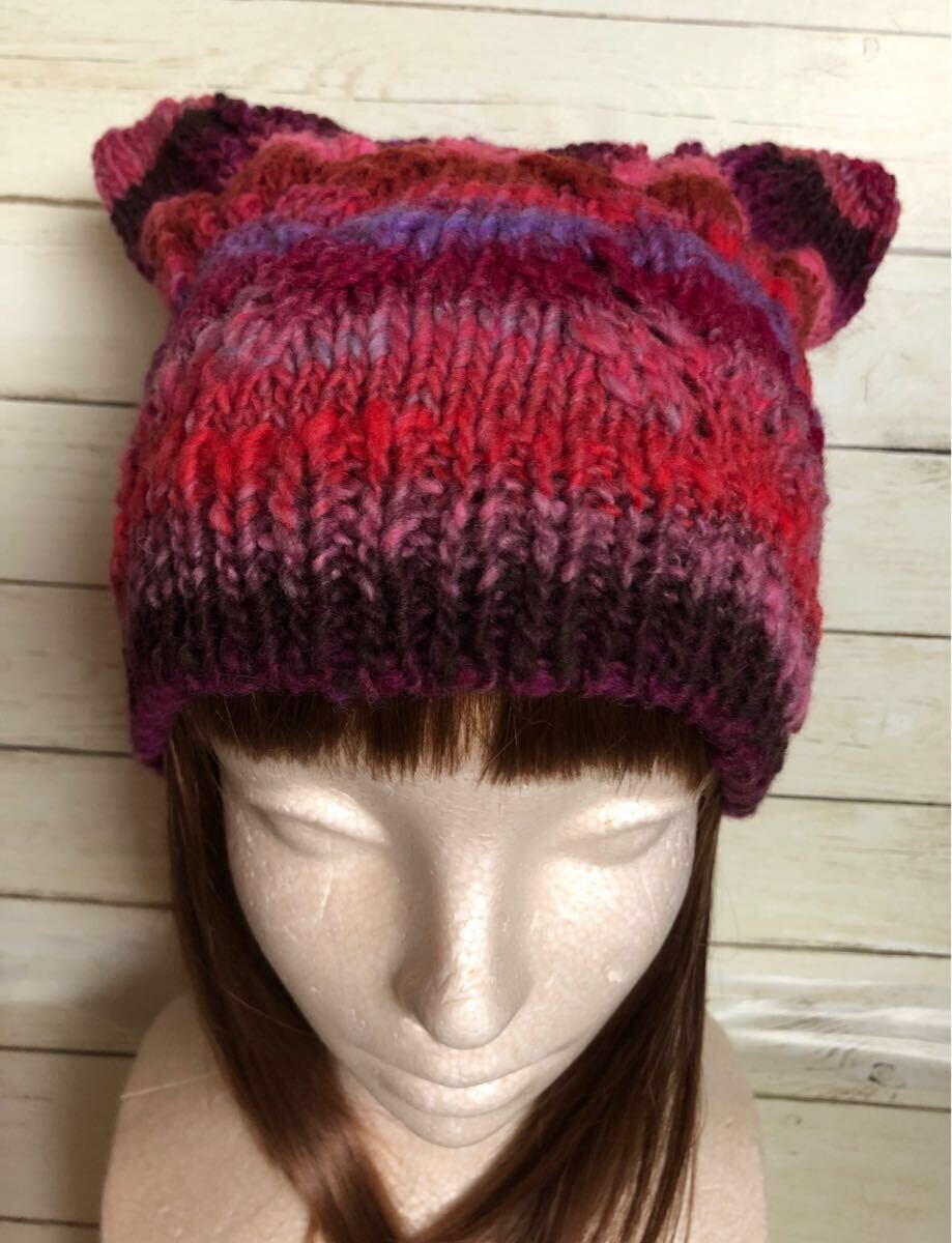 赤いグラデーションが可愛いウール毛糸で編んだ、透かし編み猫耳ニット帽です。| 出价者 | 信用 | 价格 | 时间 |