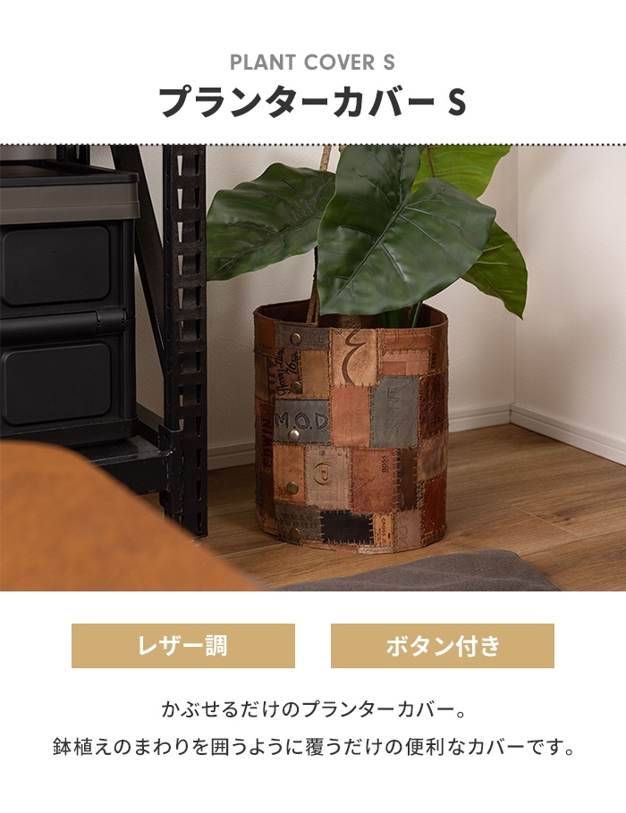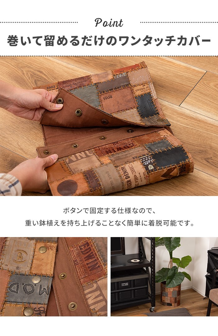 | プランターカバー 鉢植えカバー カバー ワンタッチカバー 幅80cm 高さ27cm 7~8号 マジックテープ ボタン 簡単着脱 コットン 綿 パッチワーク 革 レザー |