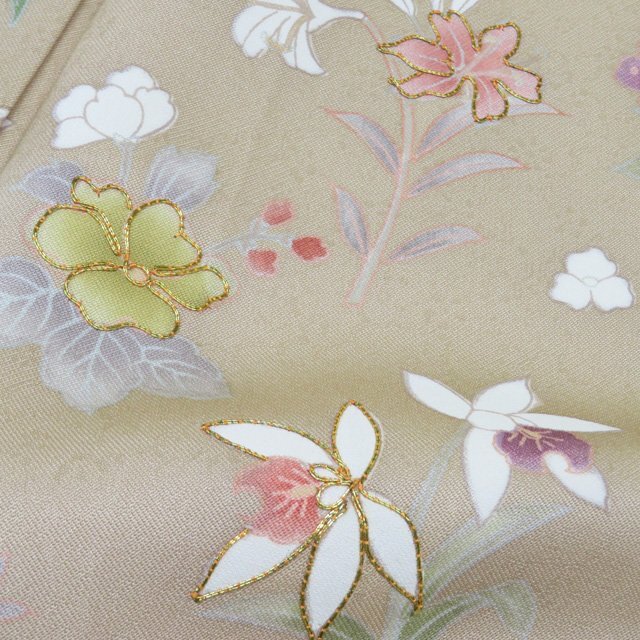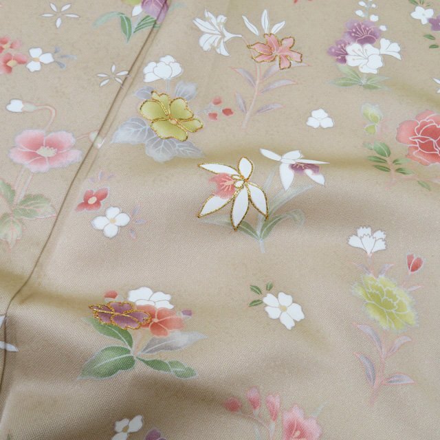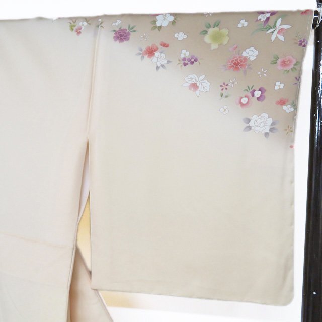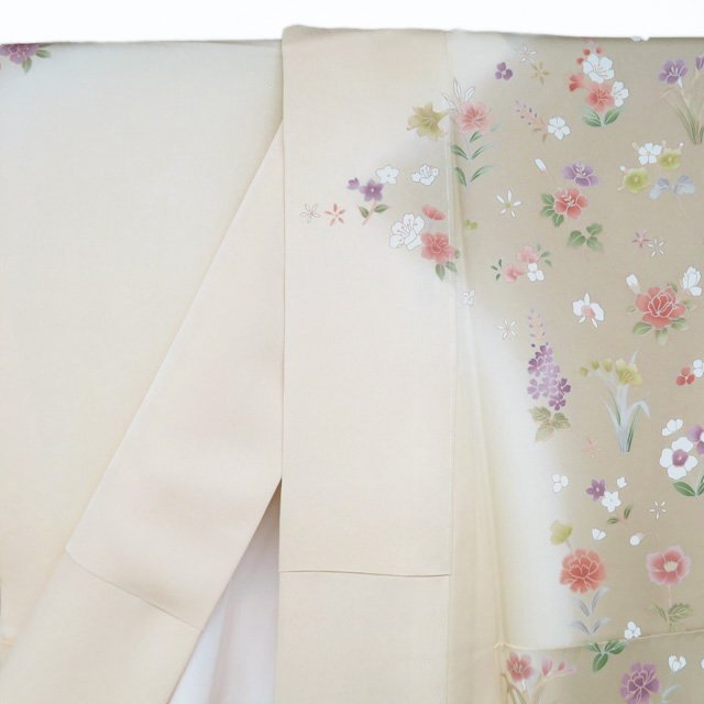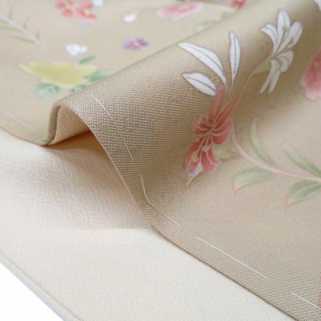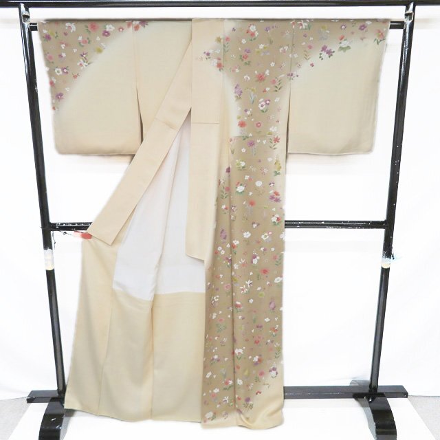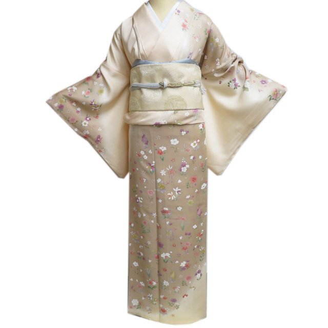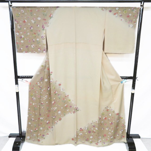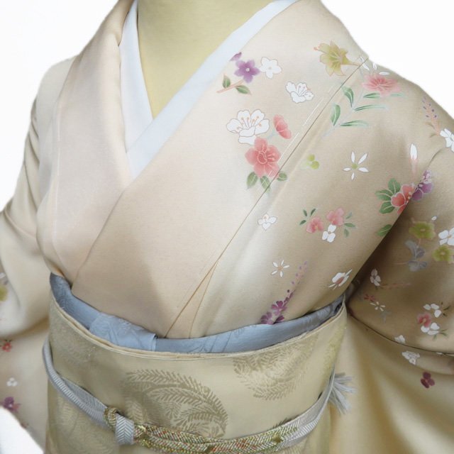 丈166.5cm(+10) 裄68cm(+0) 袖丈49.5cm(+6) 前幅24cm 後幅30cm ※サイズのお直し、承ります。 (身丈のみ、身幅のみのお直しは承っておりません) ※身丈は肩から測っております。 ※()内は※()内の数字はお直しで直せる長さを示しています。お仕立て直しの場合は胴裏を付け替えるため、さらに長く直せる場合があります。詳しくはお問い合わせください。 単位:cm 素材 正絹 商品ランク A ●着用時期 10月~5月(+-2週間) ●着用シーン 披露宴、パーティー、お出掛け、式典など ●お色 白茶色 薄卵色 多色 新品の美しいお品物です。 写真に写っている着物のみの販売で帯等の付属品はついておりません。 一部商品は実店舗・他サイトでも並行して販売しておりますので売り切れの際はご了承ください。 その他多数販売中 ku | ||||||