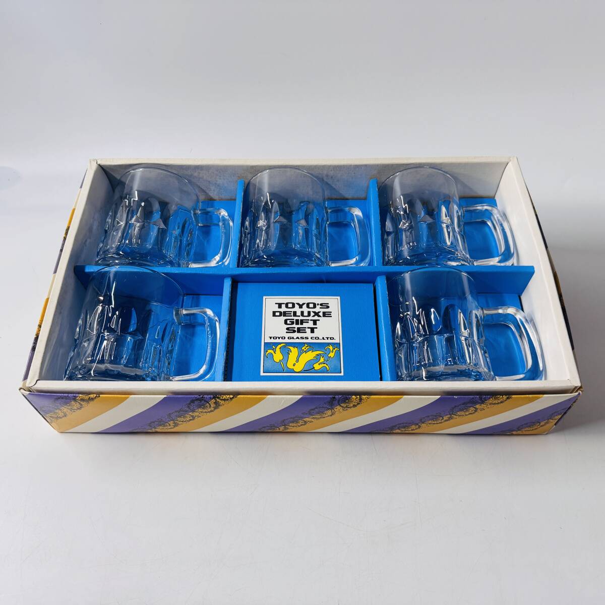 未使用 TOYO'S DELUXE GIFT SET シェールジョッキセット ビールジョッキ ジュースグラス プレスガラス 島田特殊硝子 気泡 昭和レトロ 経年保管品 現状品の出品です。