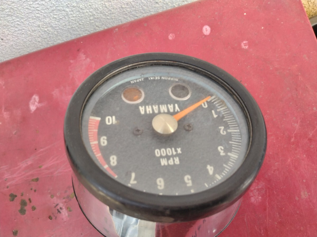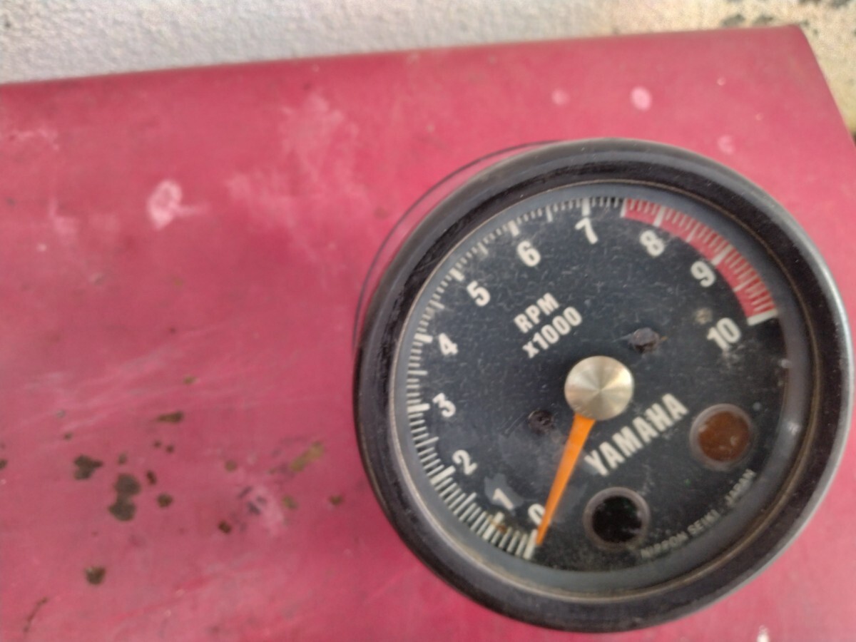 ご覧下さいまして有り難うございます ヤマハ XS-1用と思われる 純正 タコメーターです XS650用かもです?電気ドリルで回すと針が振り切ります おそらく中のダンパーオイルが無いのでは?と思います?ですので 業者さん所でダンパーオイルの入れ替えが必要かと思います?ゆっくりと20秒位回すと普通に動きだしますが OH前提です!画像をご覧になり3N守れる方のみ宜しくお願い致します