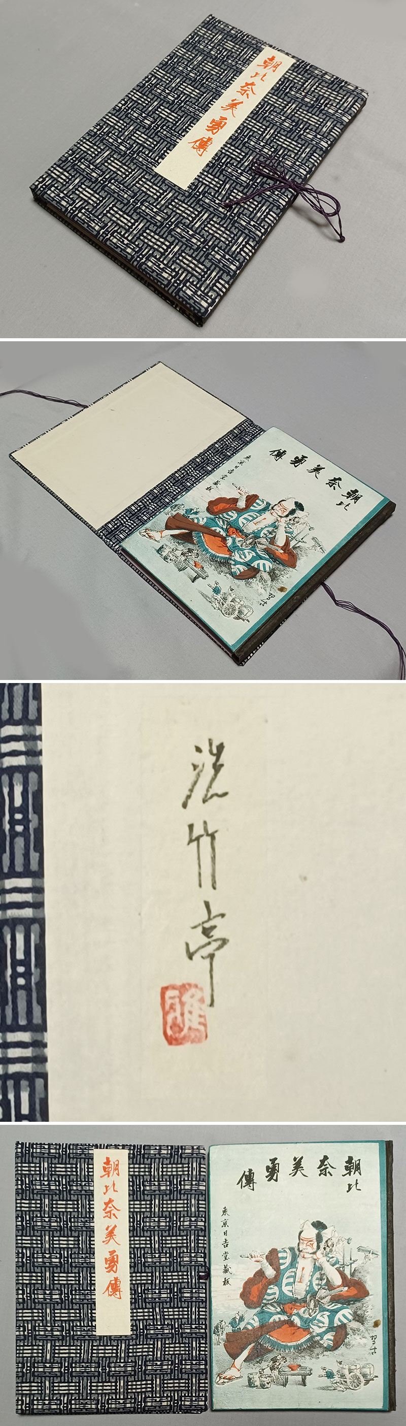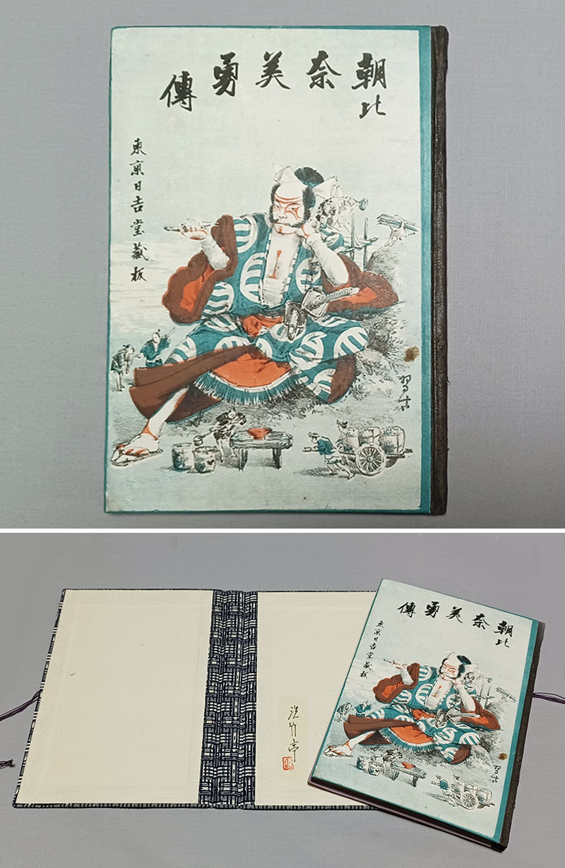 | ★謎の石版画名工、茂木習古 装画、希少ボール表紙本★『朝比奈美勇伝』、明治22年、初版、東京日吉堂、外装無し完本★三宅克己の師、 生田敦夫(洗竹亭)旧蔵、保存用拵えタトウ付き | ||||||||||||||||||