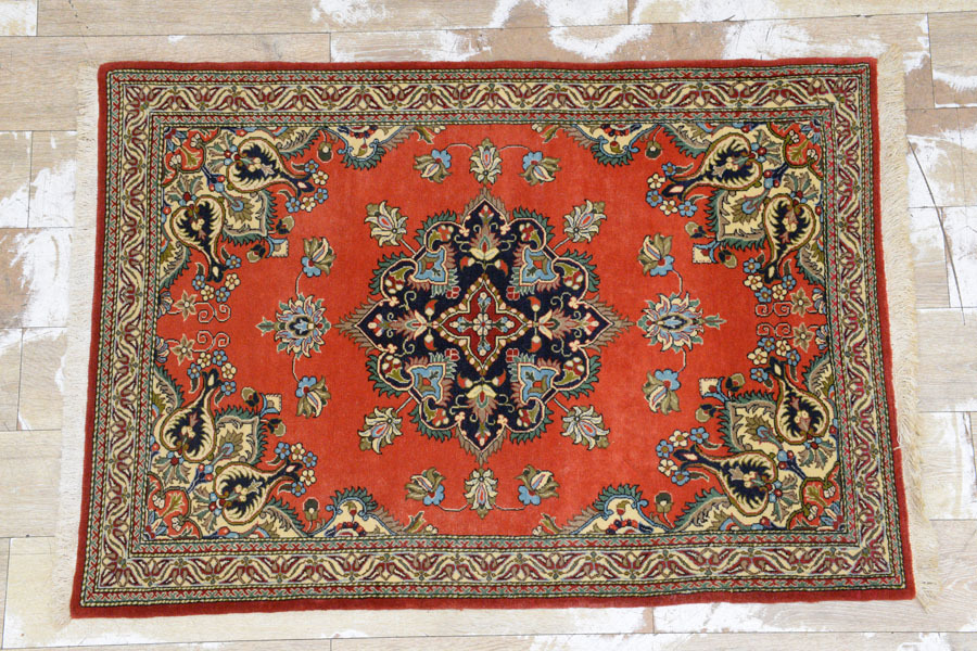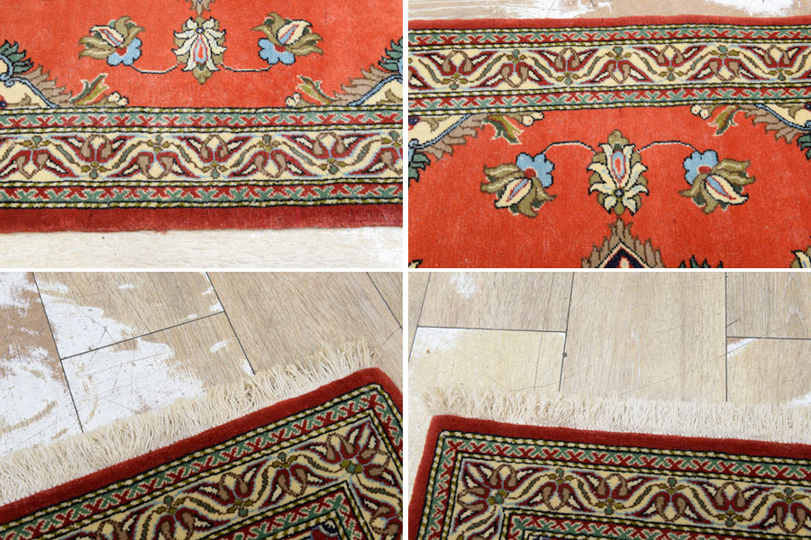 ----------------------------------------------------------------------------------------- ●送料や注意事項は必ずご確認下さい。落札後にトラブルになるケースが増えております。● ◆コンディションは写真・文章にて記載して有りますが、全てのキズの写真は掲載致しておりません。大きなダメージを除き見落とし、記載漏れが有る事はご了承下さい。 ◆当サイトにて出品する商品は多種多彩で、当方商品知識の無い物も多数ありますので落札後の質問やメンテナンス等にはお答えできません。 ◆入札された時点で、画像、文章をご理解していただいたものと判断させていただきます。不明な点は前もってQ&Aからお願い致します。入札後の質問やお電話等でのキャンセルは一切受け付け致しません。 ◆商品説明に「ノークレーム」と記載しているものに関しては、如何なる状況で届いても保証致しません。詳しくは注意事項の「商品到着後について」の最後に記載しておりますのでご確認下さい。 ---------------------------------------------------------------------------------------- 房にシミ、汚れ、表面凹んでる所、その他チリ残り、薄汚れありますが、中古品としては美品と言えるキレイなお品です。 当方でクリーニング等はしておりません。 サイズ 幅125×81.5㎝(房含む) 厚1㎝ | ||