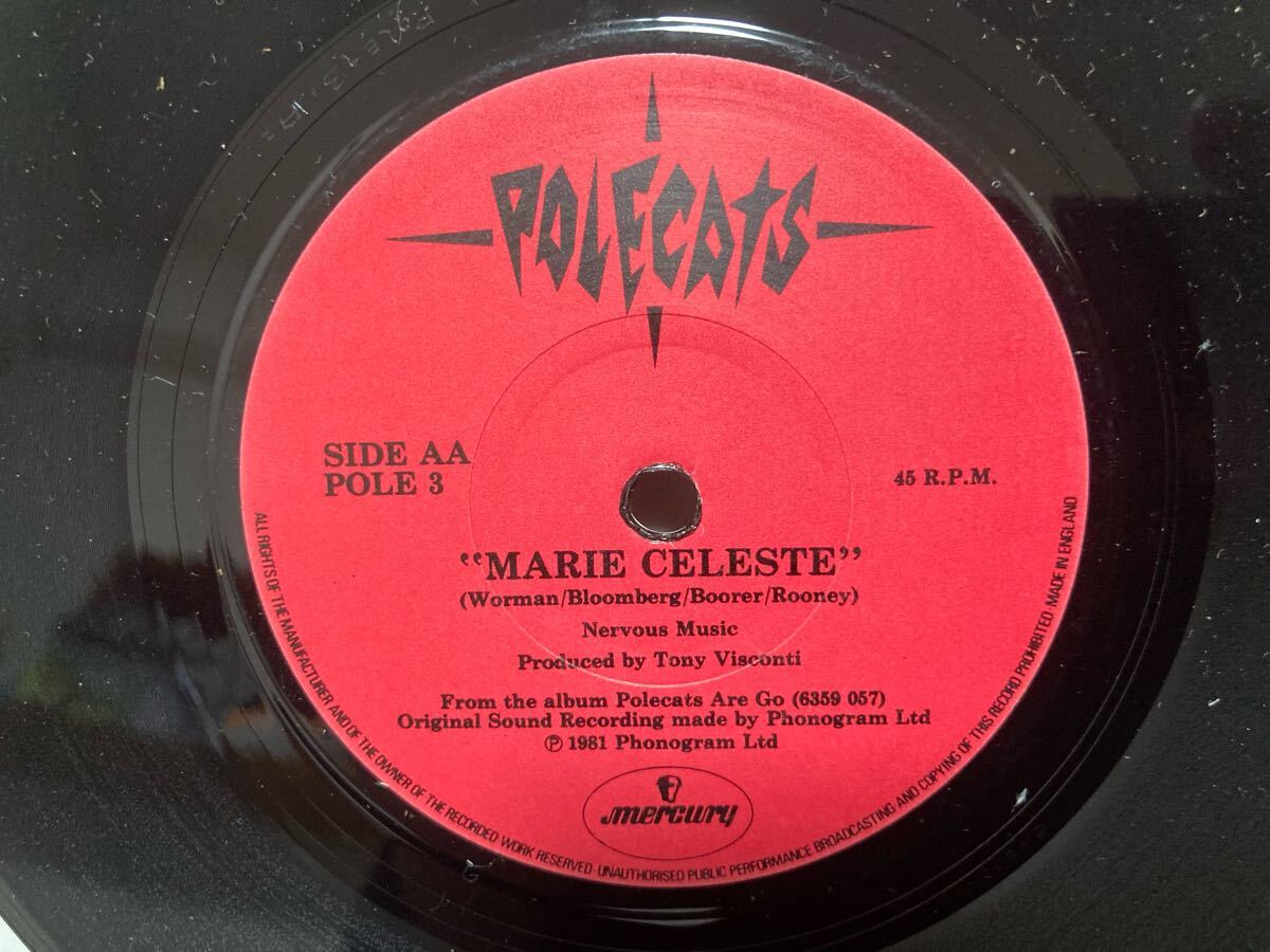 80年代を代表するネオロカバンドPOLE CATSのメジャーデビューの第3弾シングルで'MARIE CELESTE'のオリジナルUK'7です。B面はT.REXのカバー'JEEPSTER'。プロデューサーにT.REX デビッド ボウイ アダム アントを手がけたTONY VISCONTIが降臨。| 出价者 | 信用 | 价格 | 时间 |