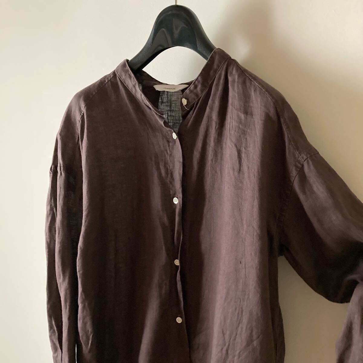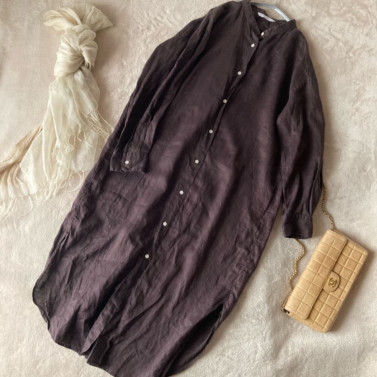 *只今上質なブランドををたくさん出品中です。 フレームワークのシャツワンピースです。 さらさらの上質なリネン素材。 ぱりっとした柔らかなシワの張り感、上質なくったり立体感の素材感です。 カラーはシックなチョコレートブラウン。 張り感が綺麗なふんわりゆるいこなれたルーズシルエット。 上質な大人の女性のスタイルに。 ■■ 素材■■ リネン 100 % ■■ サイズ ■■ 【ワンサイズ】肩幅 61 袖丈 48 身幅 61 着丈 119 cm ■■ 状態 ■■ 着用数回程度、薄く洗い感、通常範囲の着用感はございますがまだまだ綺麗な状態です。 ※繊細なシルクやニットは一回着用でも着用感が感じられる場合もございます。 ノークレームノーリターンとさせて頂きますので自己紹介をご確認の上ご入札をお願いいたします。 その他にも上質な夏物をたくさん出品しております。 |