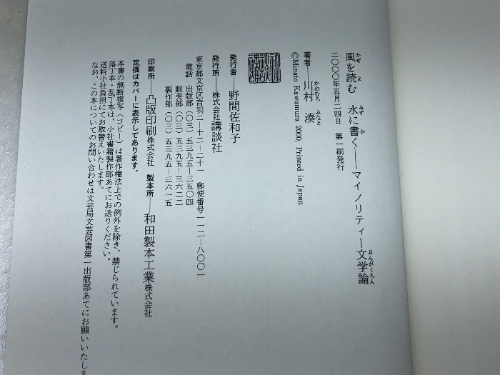 | 風を読む水に書く: マイノリティー文学論 講談社 川村 湊 | |