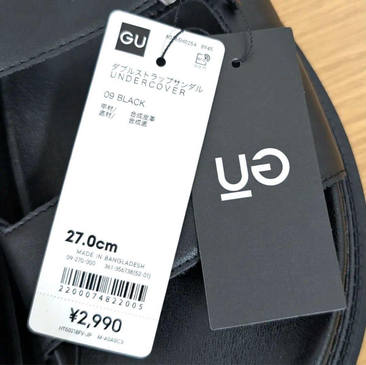 ≪商品説明≫新品未使用 GU ジーユー ダブルストラップサンダル UNDERCOVER 09 BLACK ブラック 27cm他サイズ、カラーも出品しております。日常に心地よい違和感=ノイズをもたらすという意味のキーワード“SILENT/NOISE”をコンセプトに、普遍的なデザインにツイストを加えたコレクション。クッション性の高いオリジナルフットベッドを採用。程よいボリューム感のある2段ソールデザイン。柔らかな履き心地の合成皮革を使用。素材甲材:合成皮革,底材:合成底取扱いこの商品は樹脂加工品です。素材の特性上、時間の経過と共に劣化が生じます。また空気中の湿度や紫外線、熱や汚れ等により、劣化が促進される場合がありますのでご注意下さい。風通しの良い所で十分乾燥を行った後、着用・保管して下さい。汗や雨等で湿った状態、または摩擦によって、他の物に色移りすることがありますのでご注意下さい。少しの汚れを落とす場合、乾いた布に中性洗剤を用いて軽く拭き取ってください。火のそばに置くと、酸化又は変形することがあります。油を引いてある場所でのご使用は避けて下さい。滑りやすい場所でのご使用はスリップ、転倒の原因ともなりますので十分ご注意下さい。合成皮革(銀面タイプ)は、溶剤(例:アルコール成分の入った液体、消毒水、香水、消臭剤など)が付着した場合に、白化する可能性がありますので、付着しないようにご注意ください。防水スプレーなどを使用する場合は、必ず目立たない場所で試してから使用してください。