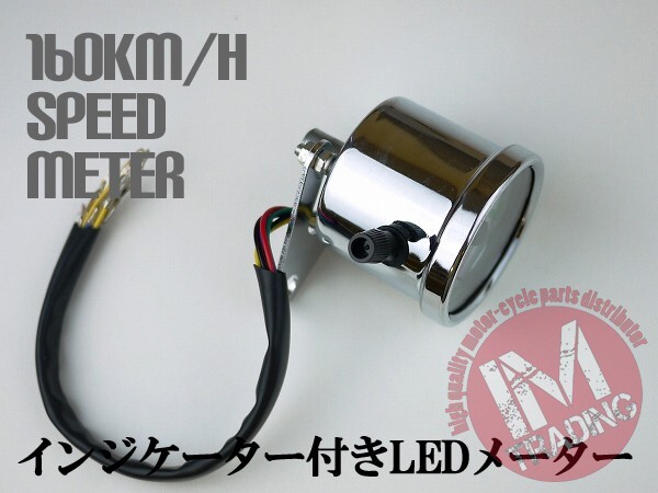 汎用の160km/h、3連LEDインジケーター、LEDバックライトつきスピードメーターです。