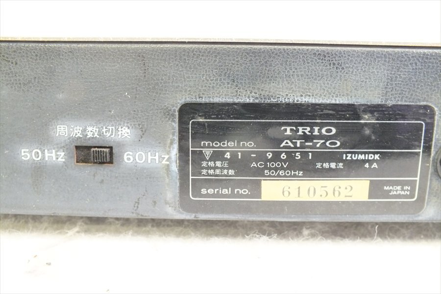 | ◆商品◆ メーカー---------TRIO トリオ 型式-------------AT-70 付属品-----------画像に写っているものがすべてになります。 ◆外装ランク◆ 【 C 】 ◆状態◆ 中古品の為キズや汚れなどの使用感はご容赦ください。 3 通電しません 傷汚れ有り 現状品での出品となります。 調整やメンテナンスが必要となります。 【重要】配送送料と送料に送料が0円と表示される場合がございますが、出品画面に記載の送料が落札後にご精算されます。 | |||||||||||||||||