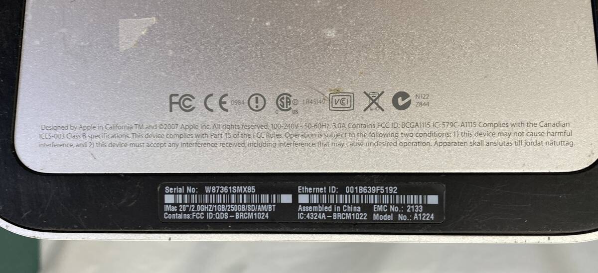 | iMac 20インチ 2008モデル A1224 デスクトップ/ OSはCHROME OS Flexに変更 | |