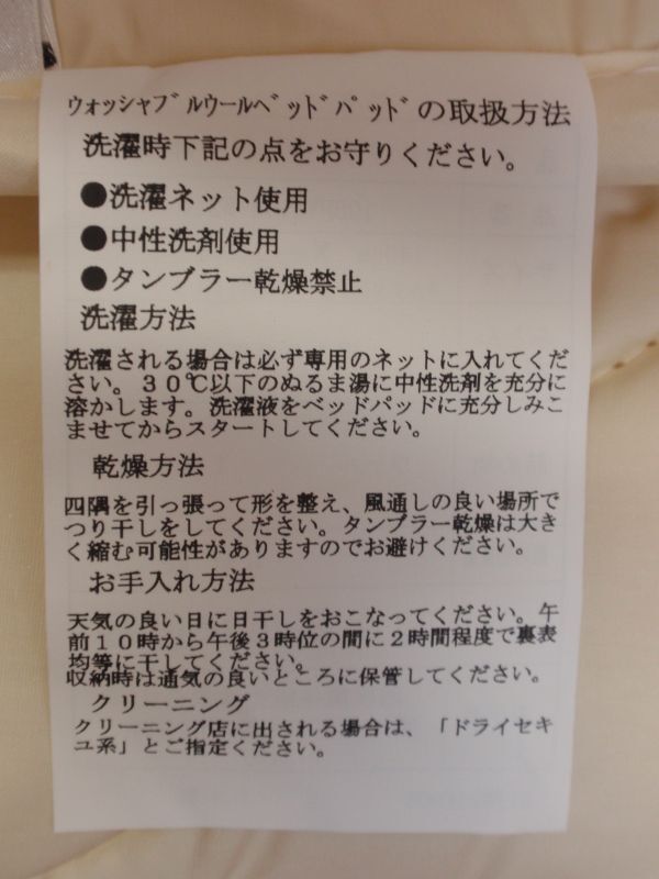 側地綿100%♪詰め物ウール100%のベッドパット!超お買い得です!