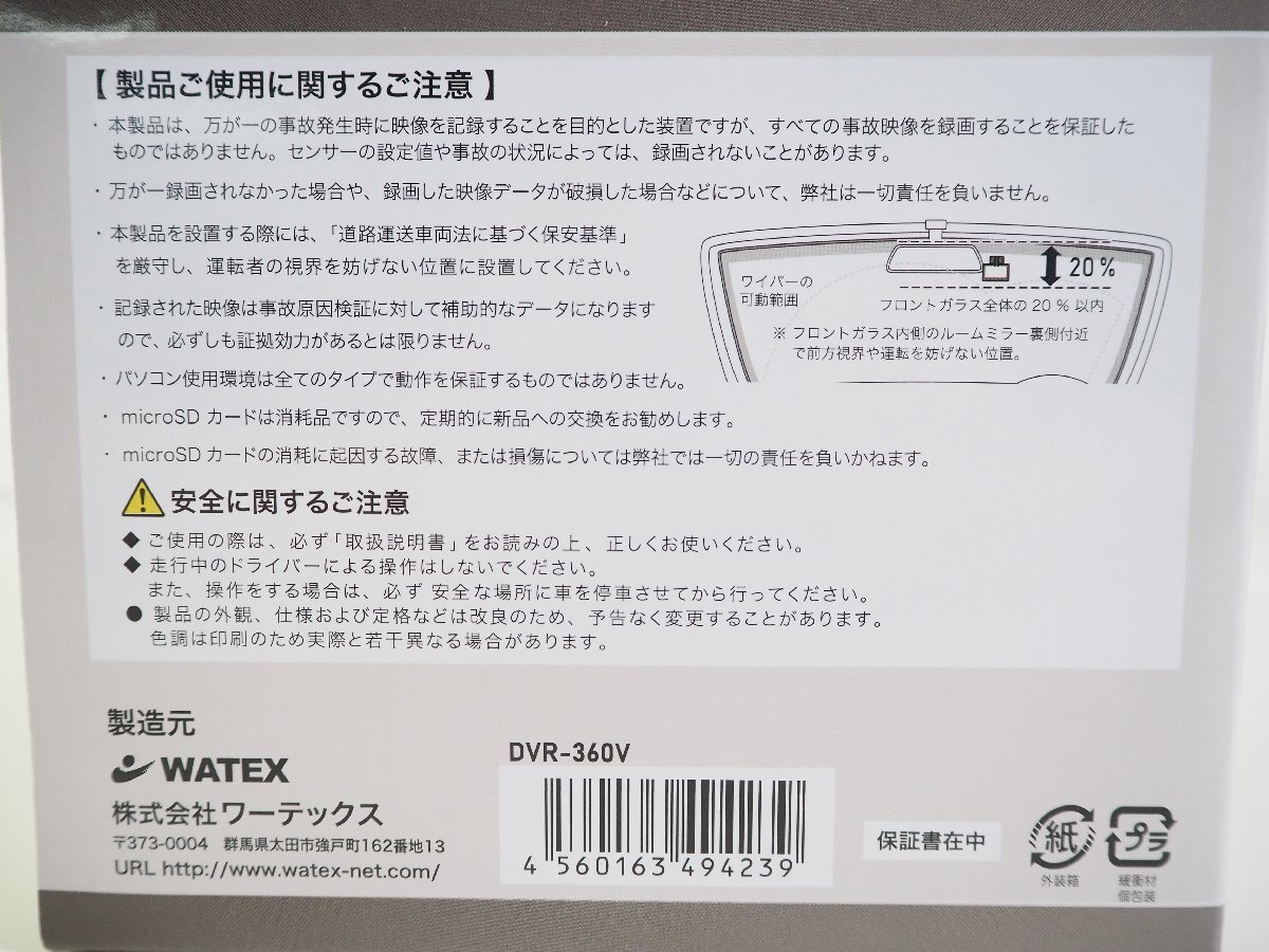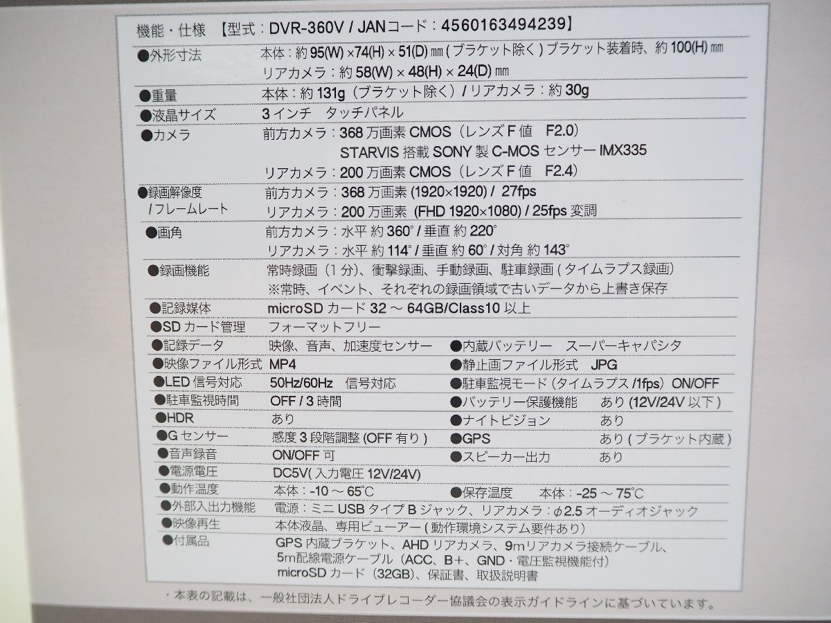 | 商品名 | ☆401☆ 【未使用】 WATEX 360°+リア ドライブレコーダー DVR-360V | |