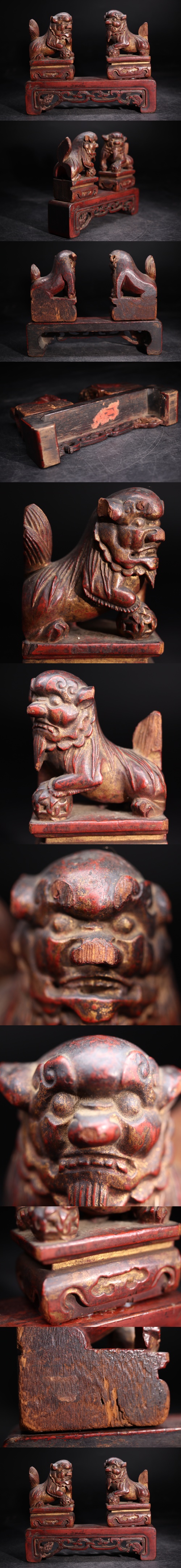 | 時代 木製 漆塗 獅子 置物 / 木工芸 木地 漆芸 仏教美術 狛犬 民藝 検索: 李朝 中国美術 .G2266 |