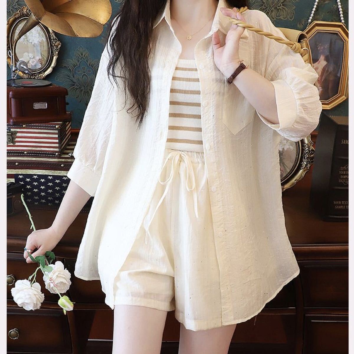 シャツ+ ショートパンツ 2点セット アウター レディーストップス レディースセットアップ 上下セット 裏地付きパンツ 春夏 カジュアル シンプル おしゃれ お洒落 ゆったり 夏 可愛い 薄手 セットアップ 韓国風 ルームウェア お出かけ SLSD007(2色S-XL)| 出价者 | 信用 | 价格 | 时间 |