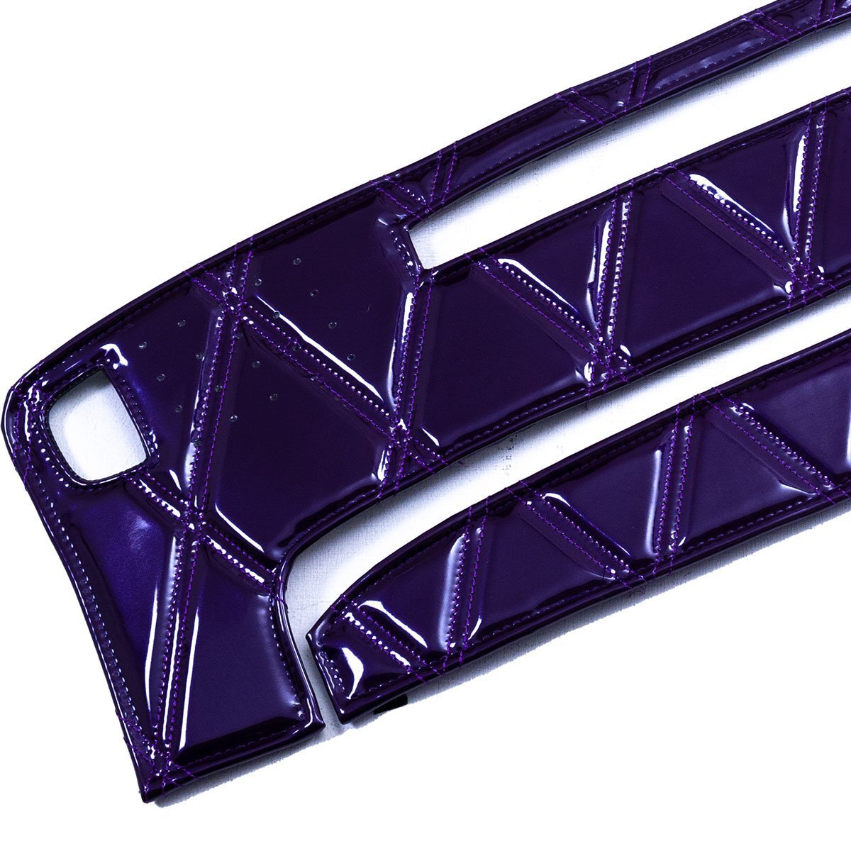 | 【 ここがポイント 】 ★光沢のあるエナメル調PVCレザーで車内イメージを一新、鮮やかなカラーでインテリアを演出します。 ★設定カラーは、「ブラック」、「ブラウン」、「ブルー」、「レッド」、「ワイン」、「ネイビー」、「パープル」、「グリーン」、「イエロー」の全9色。国内生産・車種専用の設定です。愛車のトータル・ドレスアップをお楽しみ下さい。
