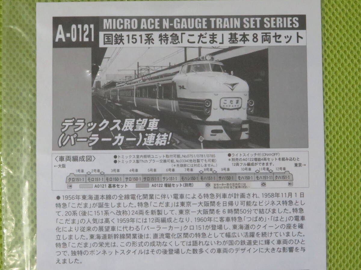 | 商品説明 | Nゲージ ①MICRO ACE★A0121「国鉄151系特急こだま」★基本セット8両 ②MICRO ACE★A0122「国鉄151系特急こだま」★増結セット4両 〇購入後、僅かな使用で長期保管していた保管品です。 ○付属品は購入時の状態で画像の内容となります。 ○車両は出品前に走行テスト(ライト点灯確認含む)をおこなっています。 ○ケース保存による、摺れや僅かな汚れ、傷みなど在る場合がありますので画像にてご確認願います。(気になる方は入札をお控え下さい) |