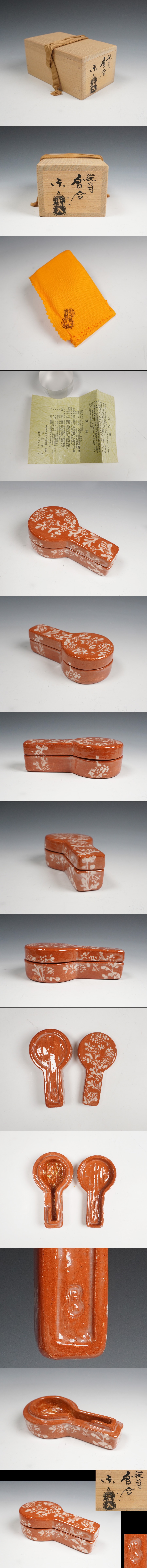 吉村楽入 作 玄々斎好赤楽鏡笥香合 共箱 茶道具 保証品 | ||||