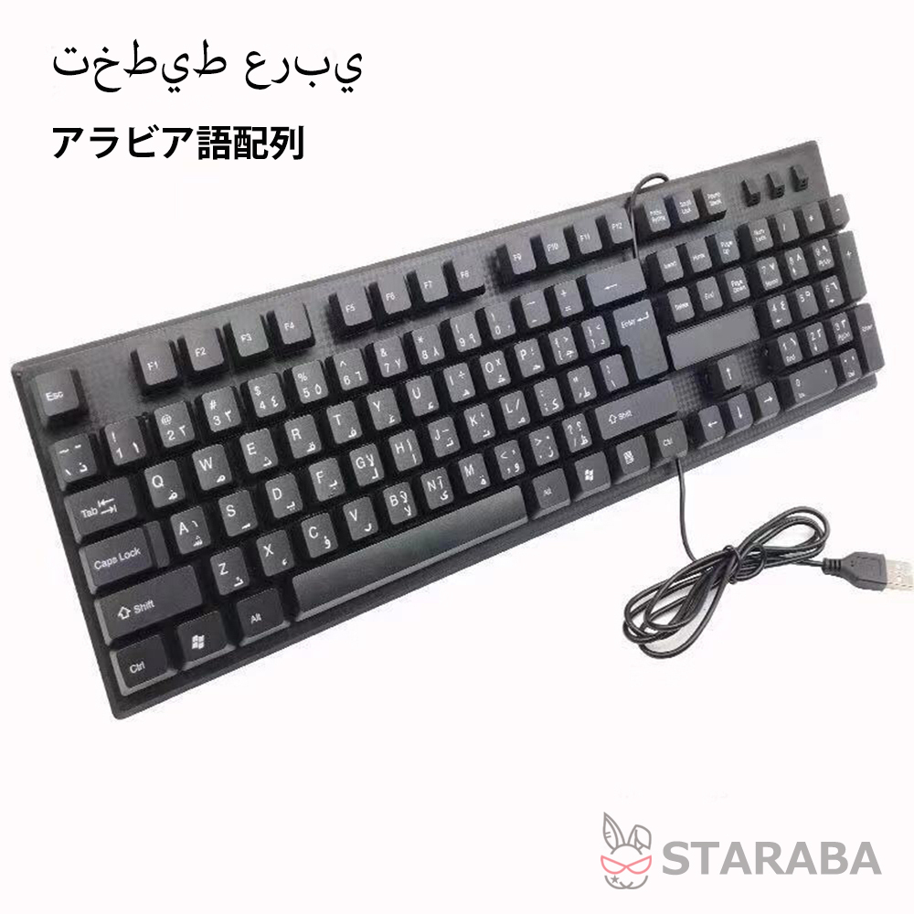 キーボード アラビア語配列 有線 薄型 軽量 有線キーボード アラビア語 パソコン キーボード 有線 USB 角度調節スタンド付 送料無料