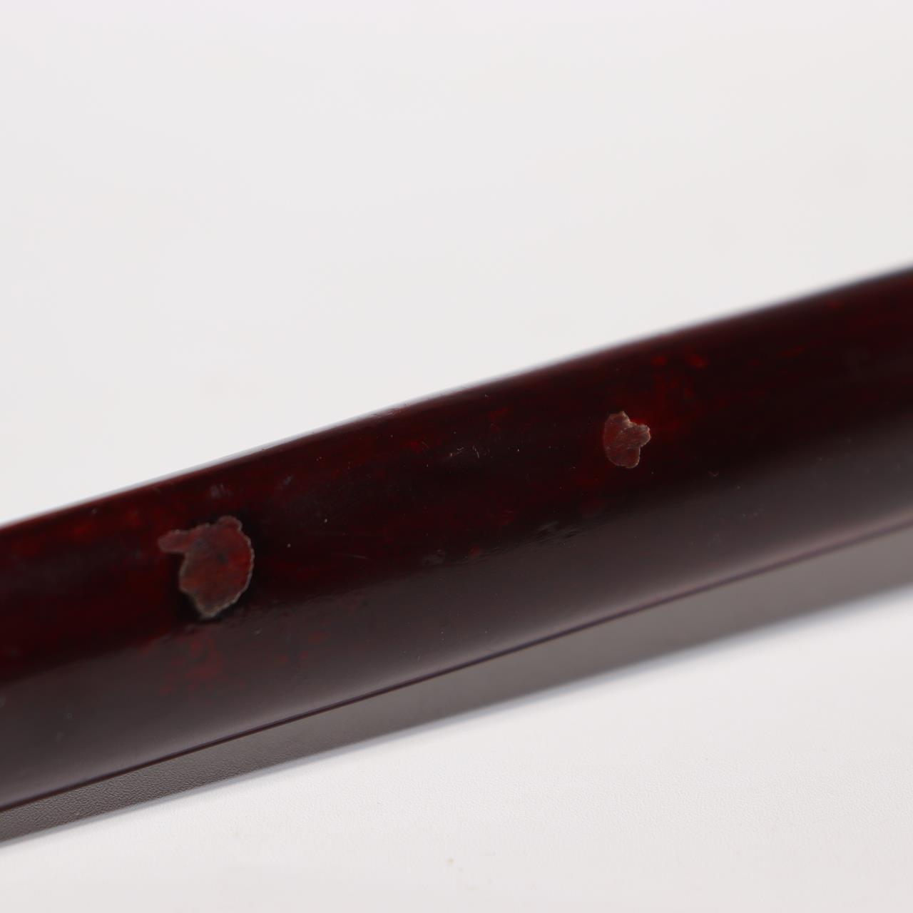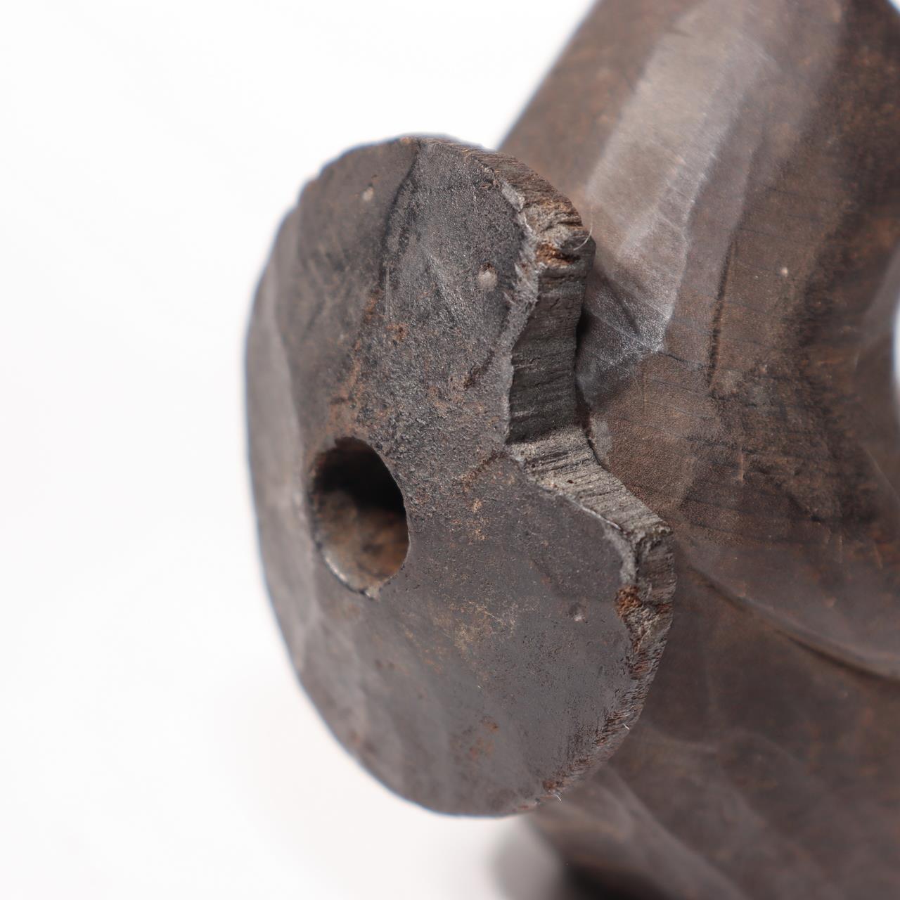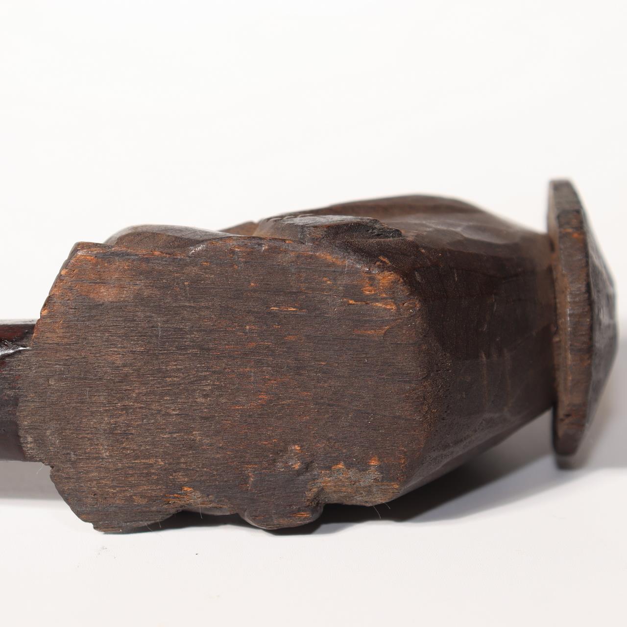 ◆ 商品説明本品は、日本の伝統的な木製煙管で、愛嬌ある狸の姿を精緻に彫り上げた一刀彫作品です。全体が一本の木から彫り出されており、胴部に銘が刻まれています。 喫煙具としての機能を持ちながら、民芸的な彫刻作品としての価値も兼ね備えています。 【サイズ】 長さ:約24cm 幅:約4cm 重量:約63g 【状態】 経年による擦れや漆の剥がれ、使用痕が見られますが、全体としてしっかりとした状態を保っています。 当方は骨董品を中心に取り扱っており、安心してお取引いただけるよう丁寧な対応・梱包を心がけております。 ◆ 商品について