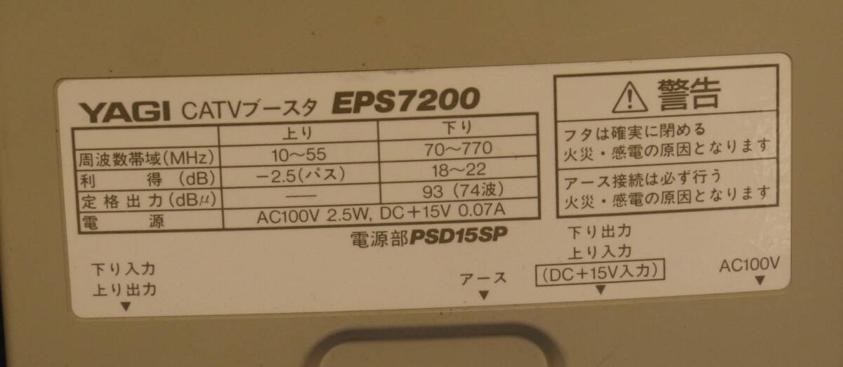 | YAGI / 八木 CATVブースター【 EPS7200 】2台 電源OK !! | |