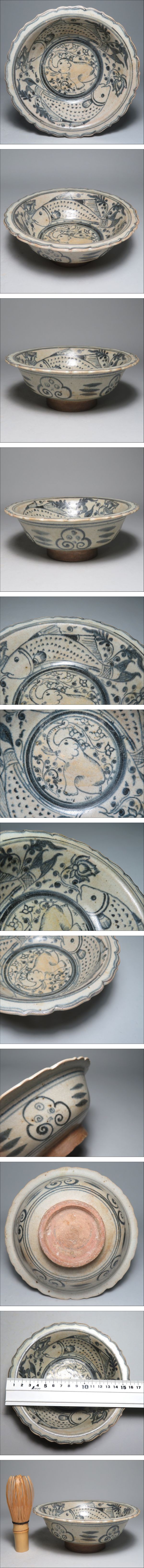 「都内コレクター所蔵品」ベトナム(越南)時代古陶 安南染付花魚象文皿 輪花皿 安南焼 東南アジア古陶器 | |||