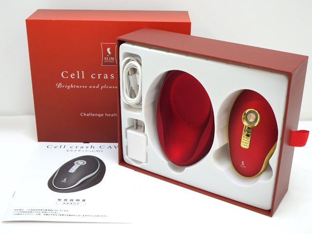 <商品詳細> ★メーカー:スリムビューティーハウス ★品 名:Cell crash CAVI ★外形寸法(約):充電器付き/高さ130.6×幅92.8×奥行62.5mm ★本体質量(約):本体233g/充電台66g ★超音波周波数:500KHz ★連続使用時間:約30分 ★防水性能:IPX7 ★付属品 :元箱、説明書、本体、充電台、充電コード 商品の状態は【 中古品 】となります。 細かな擦れや小傷が御座いますが目立ったダメージは御座いません。 なおジェルが無い為、通電のみ確認のお品物です。 詳細は画像にてご確認下さい。 別途:その他、いろいろ出品しています |