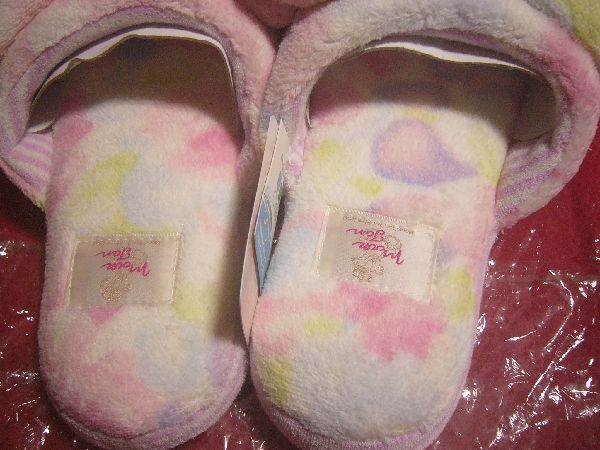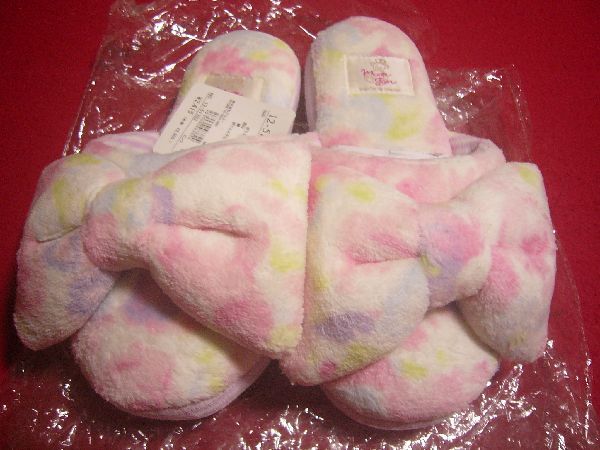 Moon Tanの未使用スリッパです。ソールに「38」の表記があるのでサイズは「24㎝」くらいだと思います。Moon Tanのこの当時のスリッパは現在よりも色使いがとても可愛らしく華やか。ピンク系で明るく暖かな印象を与えるスリッパです。お探しの方は是非この機会に。