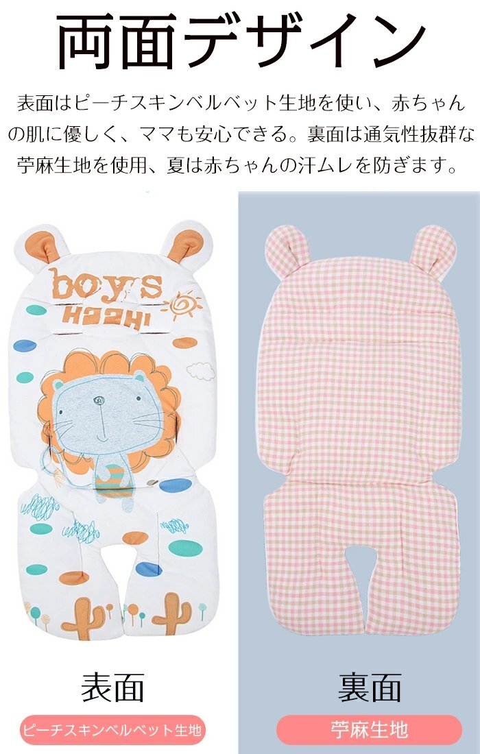 【両面デザイン】ベビーシートパッドライナーは丈夫なピーチスキンベルベット生地+苧麻生地でできており、四季折々快適です。