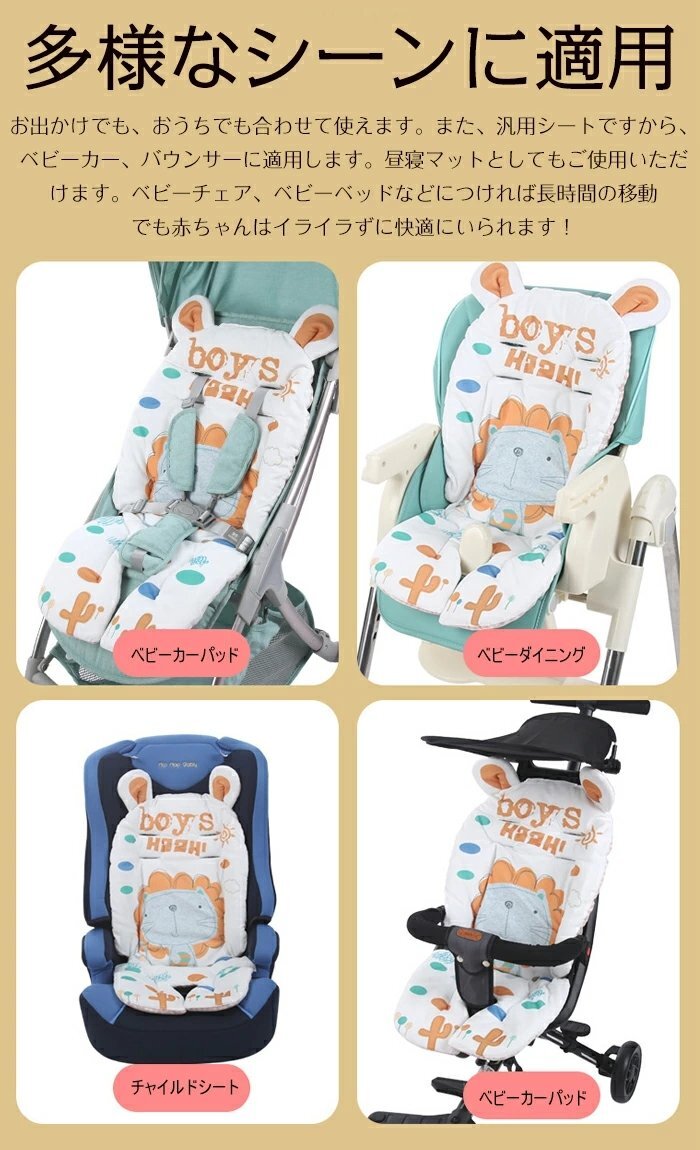 【多様なシーンに適用】お出かけでも、おうちでも合わせて使えます。また、汎用シートですから、ベビーカー、バウンサーに適用します。昼寝マットとしてもご使用いただけます。ベビーチェア、ベビーベッドなどにつければ長時間の移動でも赤ちゃんはイライラずに快適にいられます!
