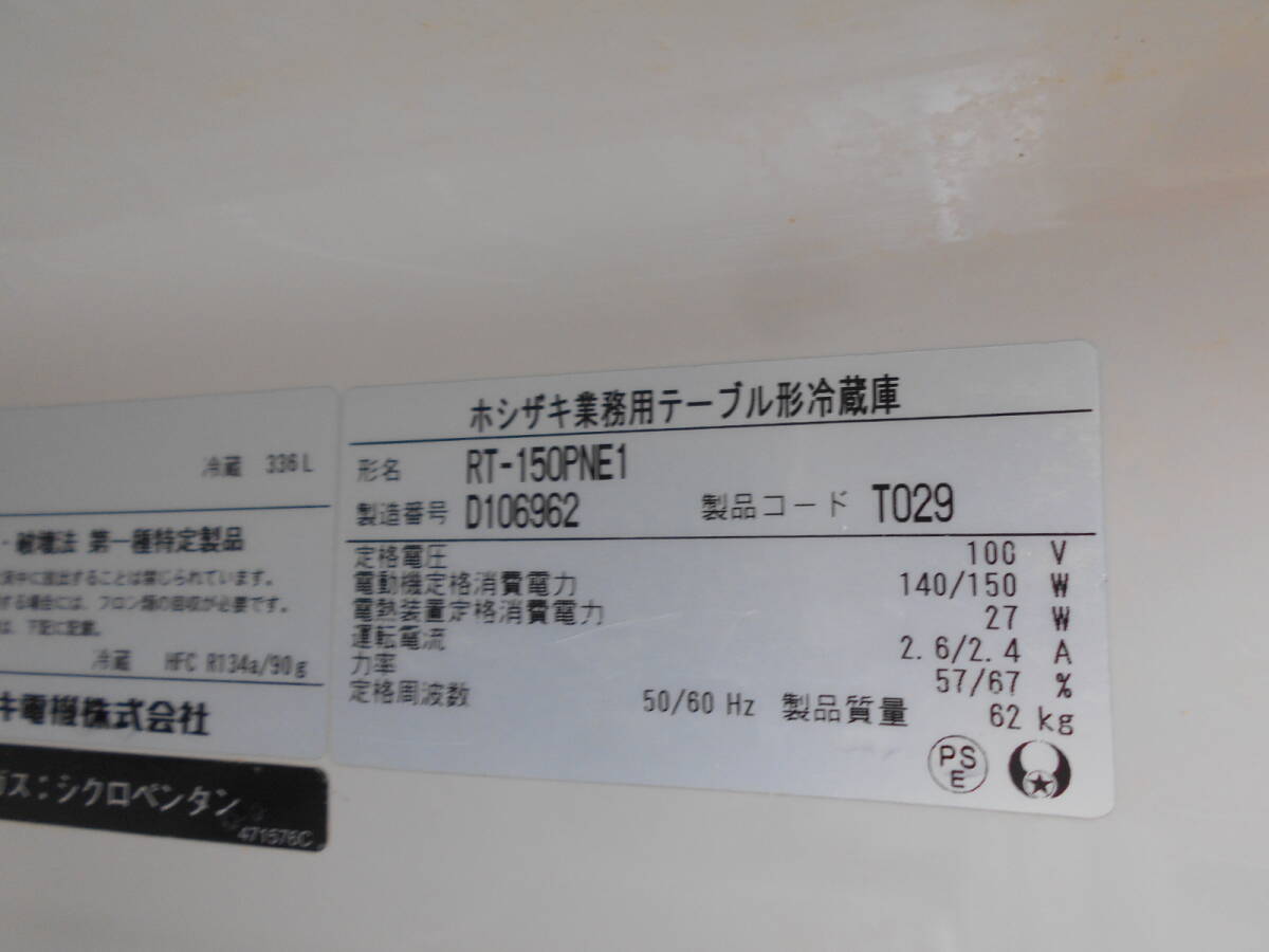 | ★送料無料(北海道 沖縄 離島除く)★動作確認済み★ホシザキ業務用テーブル形冷蔵庫RT-150PNE1★コールドテーブル |