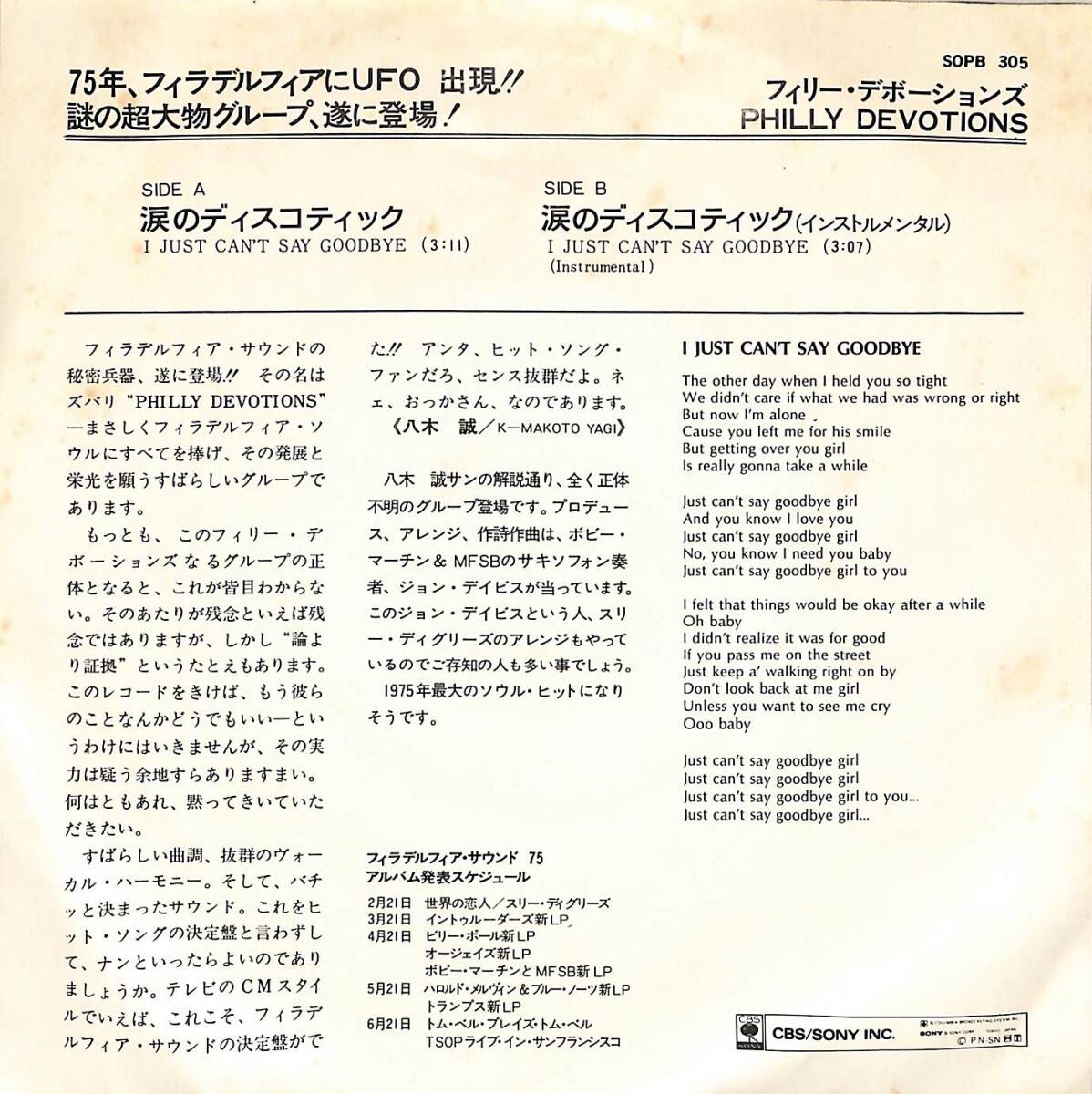 C00198934/EP/フィリー・デボーションズ「I Just Cant Say Goodbye 涙のディスコティック / Instrumental (1975年・SOPB-305・ディスコ・