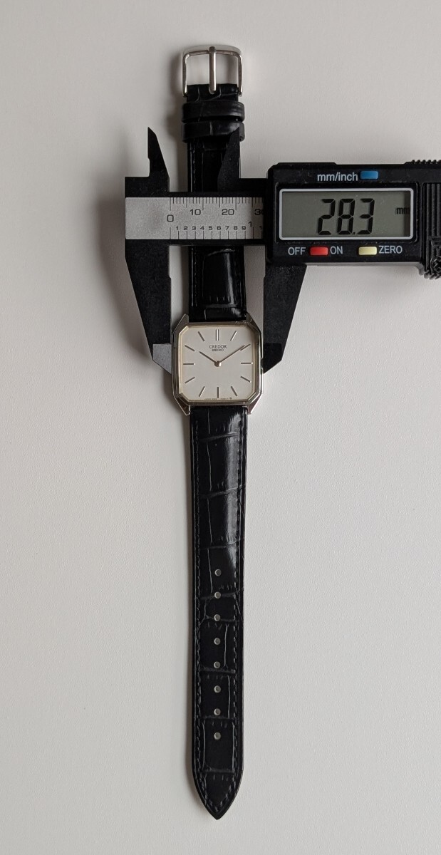 ケース径は竜頭を含まず横幅約28.3ミリ。