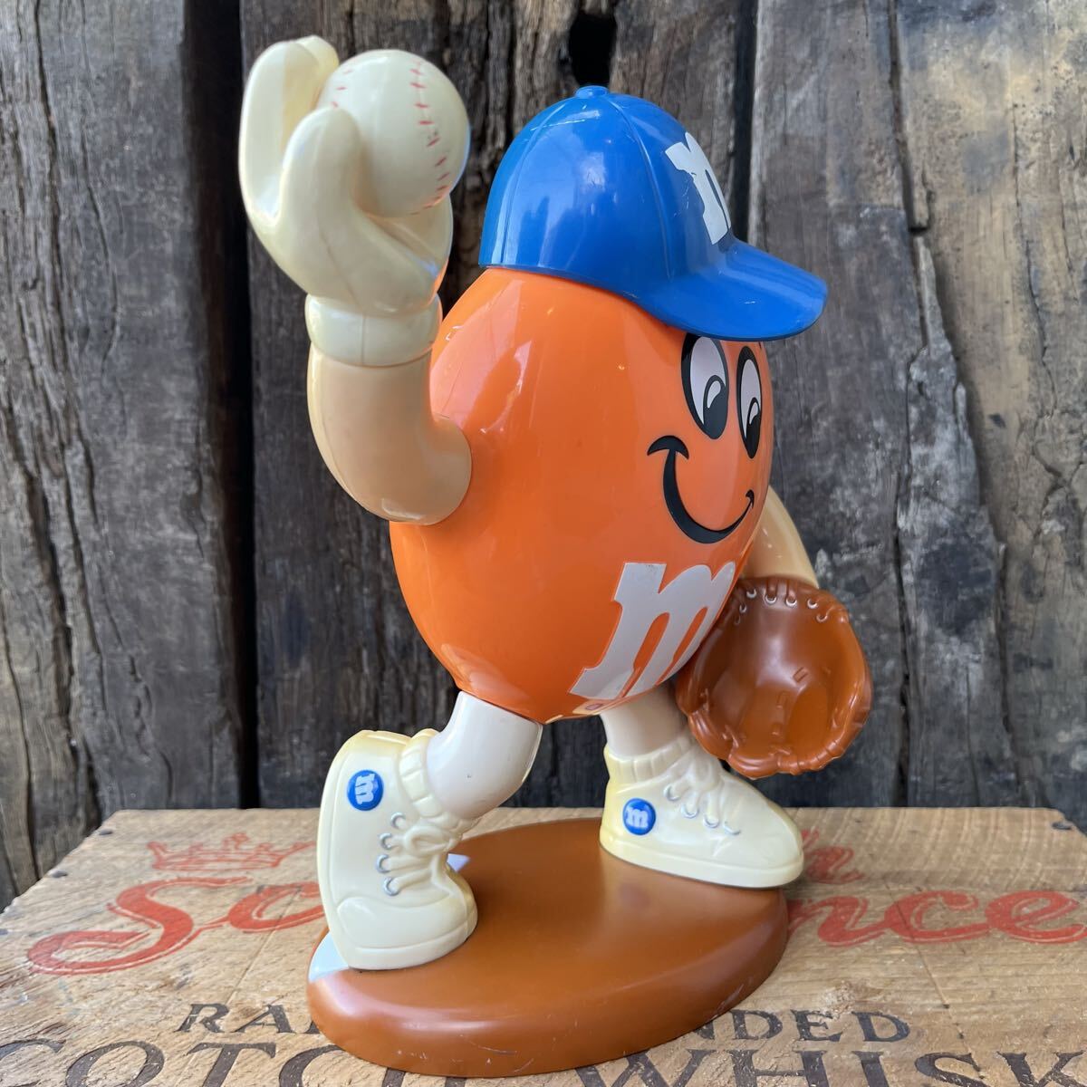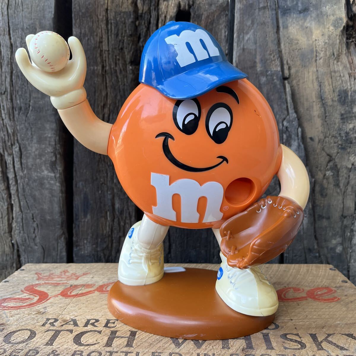 M&M'sのオレンジ色のキャラクターが野球のユニフォームを着て、ボールとグローブを持っているキャンディディスペンサーです。| 出价者 | 信用 | 价格 | 时间 |