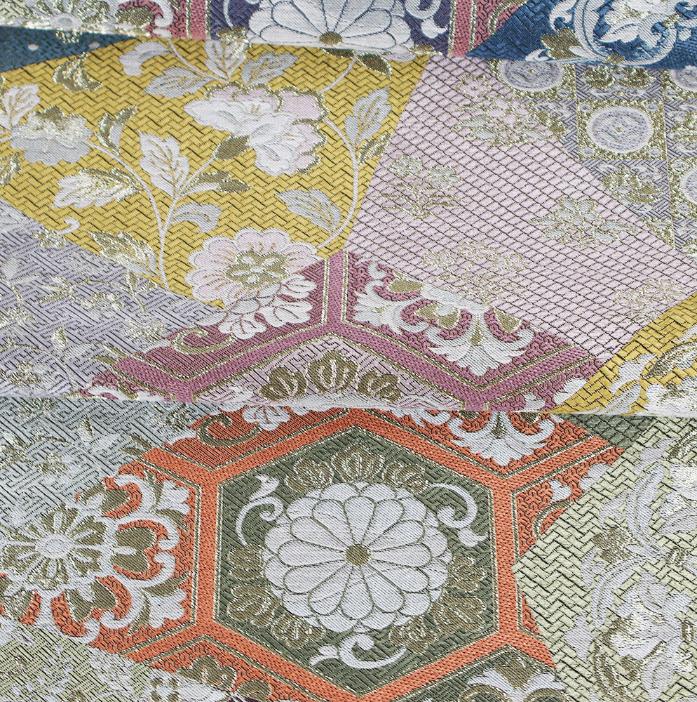 | 色・柄 | 西陣織袋帯 全通 裂取文 紫・緑・金・銀・薄緑・黄土色地 唐花・パルメット唐草文様・華文 菊・葵・花喰鳥 (写真では上手く色が出ない場合があります。ご了承下さい) ※お使いのディスプレイの種類や設定の差により 実物の色と画像の色が少々異なることもございます。 |