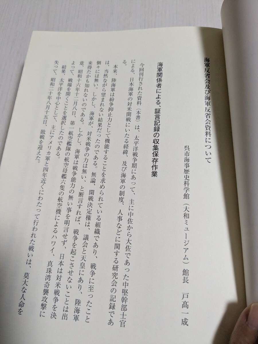 新品とは言い切れませんが、ほぼそれに近い状態です。旧海軍軍人さんたちの数々の貴重な証言を収めた記録集です。この機会に、ぜひ。