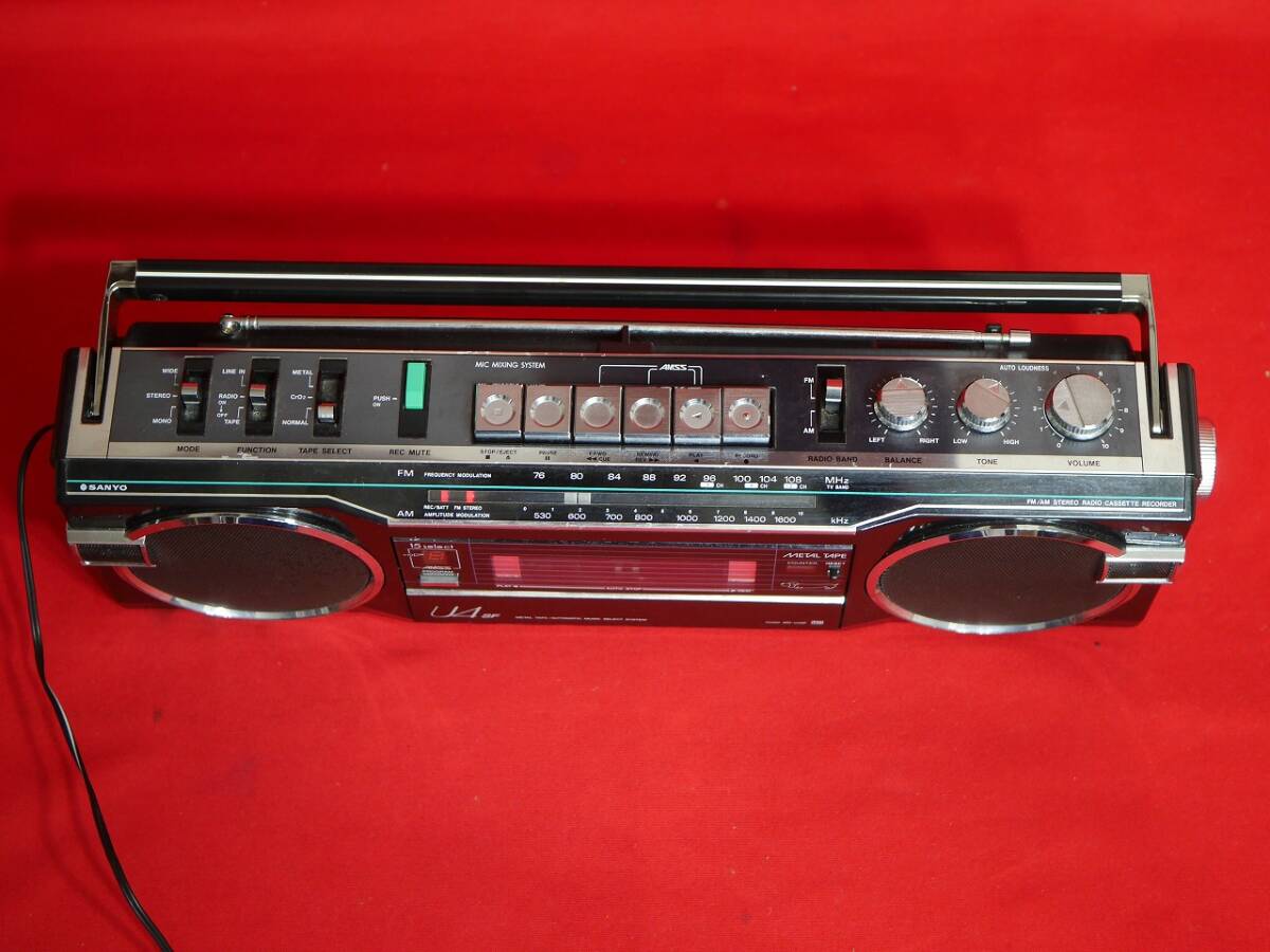 | 商品に興味をもっていただき、ありがとうございます。 以下お読みいただき、たくさんのご入札。お待ちしております…♪(^^)♪ **************************************************************** ■【商品説明】■ ■昭和レトロ 三洋電機 希少 SANYO MR-U4SF おしゃれな テレコ FM/AM ステレオ アンティーク ラジオカセットレコーダー動作品です。 ■メーカー:三洋電機 SANYO ■モデル名:MR-U4SF ■発売年:1980年(昭和55年) ■当時の定価:\36,800円 ■外形寸法:W430 x H128 x D89mm ■重量:2.25kg ■お色:ブラック ■日本製 MADE IN JAPAN **************************************************************** ■【商品状態】■ ■ACアダプター、電池共に通電動作確認済み。 ■カセット部分とテープとカウンター部分新品ゴムベルトに交換しております。 ■テープ再生、早送り、巻き戻し、一時停止、録音、動作確認済み。 ■ラジオFM/AM受信します。受信感度◎ ■バランス、トーン、ボリューム、チューニング、テープラジオ 切り替え、動作確認済み。 ■ロッドアンテナ折れなく真っ直ぐ伸びます。 ■商品の状態は画像でご確認宜しくお願い致します。 ■落札後直ぐに丁寧に梱包してヤマト運輸より発送いたします。 ■【付属品について】■ ■ラジオカセットレコーダー本体、純正品ACアダプター、電池蓋です。 **************************************************************** |