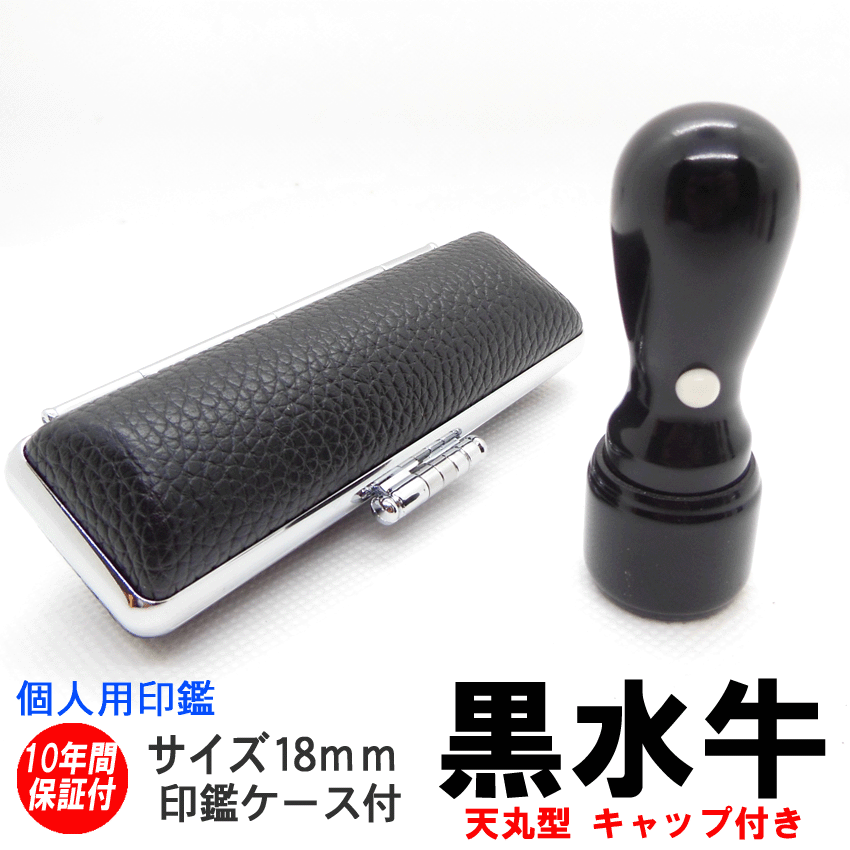 | ■ 商品内容 | 黒水牛印鑑18mmサイズ 黒ケース付き 普通郵便なら送料無料!! 10年間保証付!! |