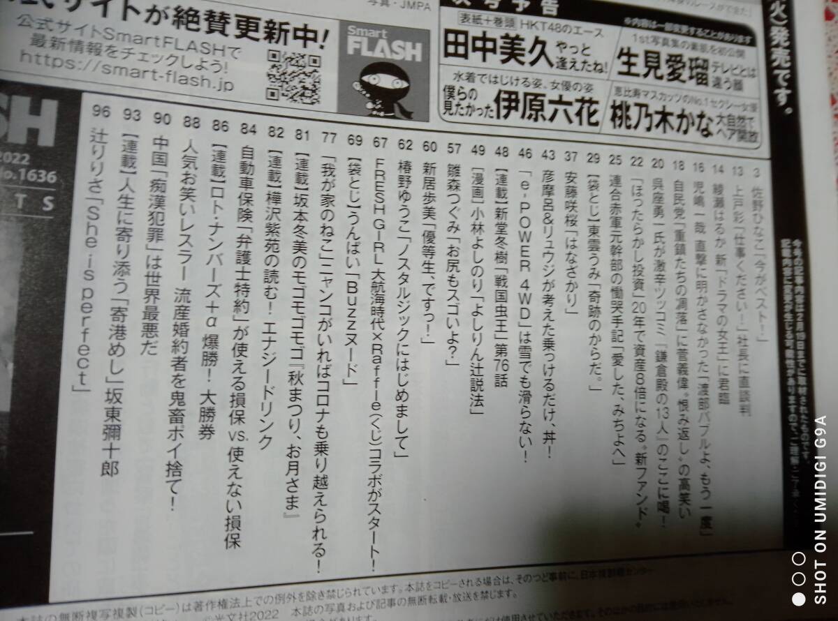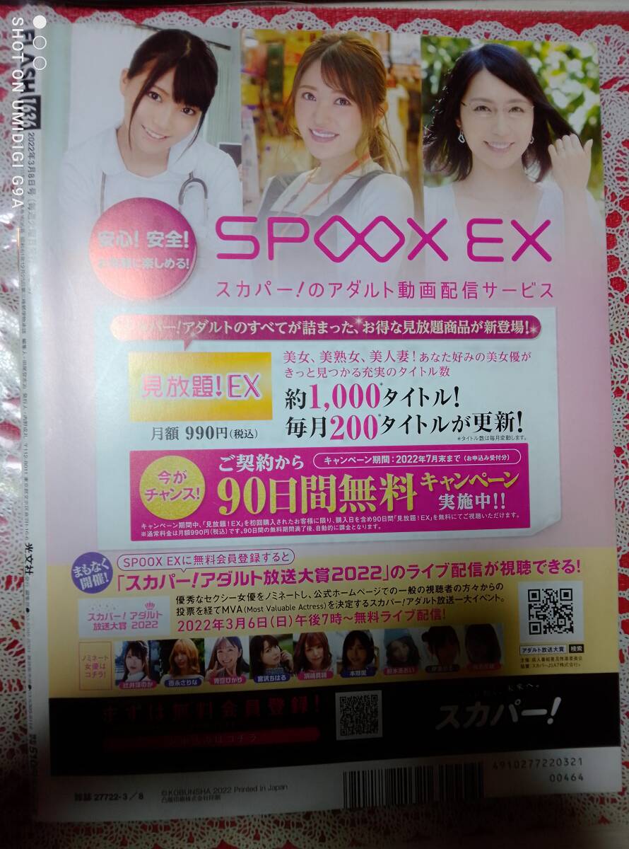 | 商品説明 | FLASH フラッシュ2022年3月8日号 (1636号) 経年劣化が有ります(焼け、擦れ、傷) 袋とじ未開封・2か所 210g(1㎏弱・3㎝弱・A4サイズ位ならゆうパケットで同封出来ます |