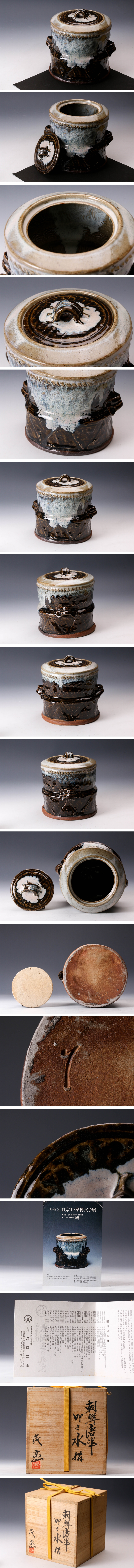 【佳香】七代 江口宗山 朝鮮唐津叩き水指 作陶展出品作 共箱 作陶展DM 茶道具 本物保証