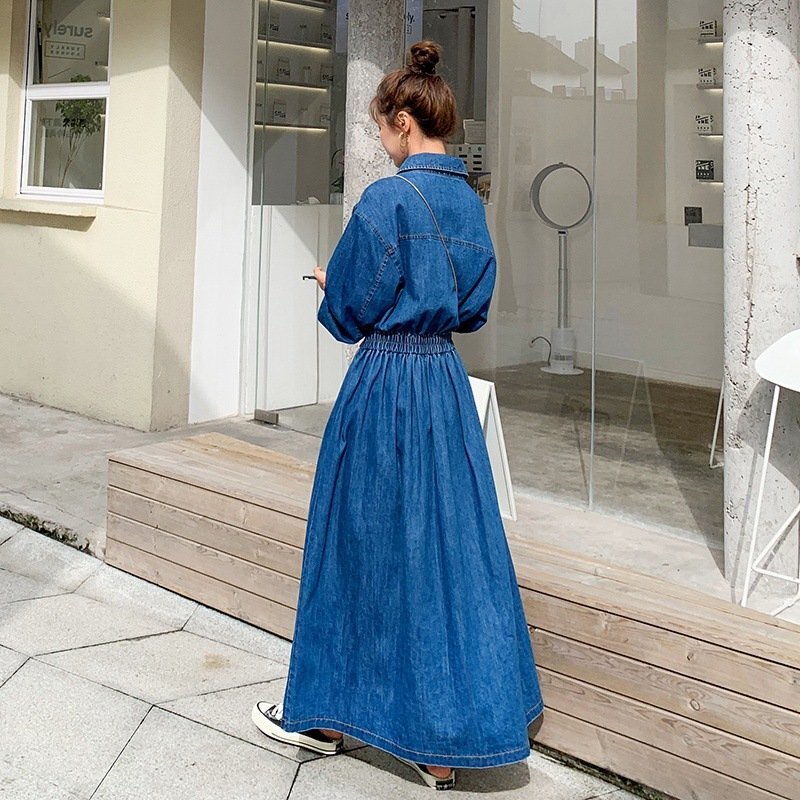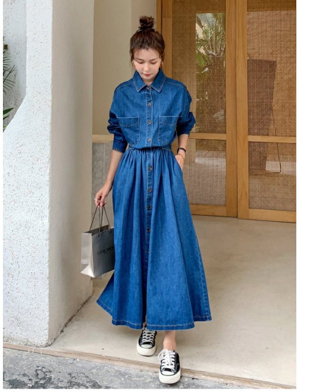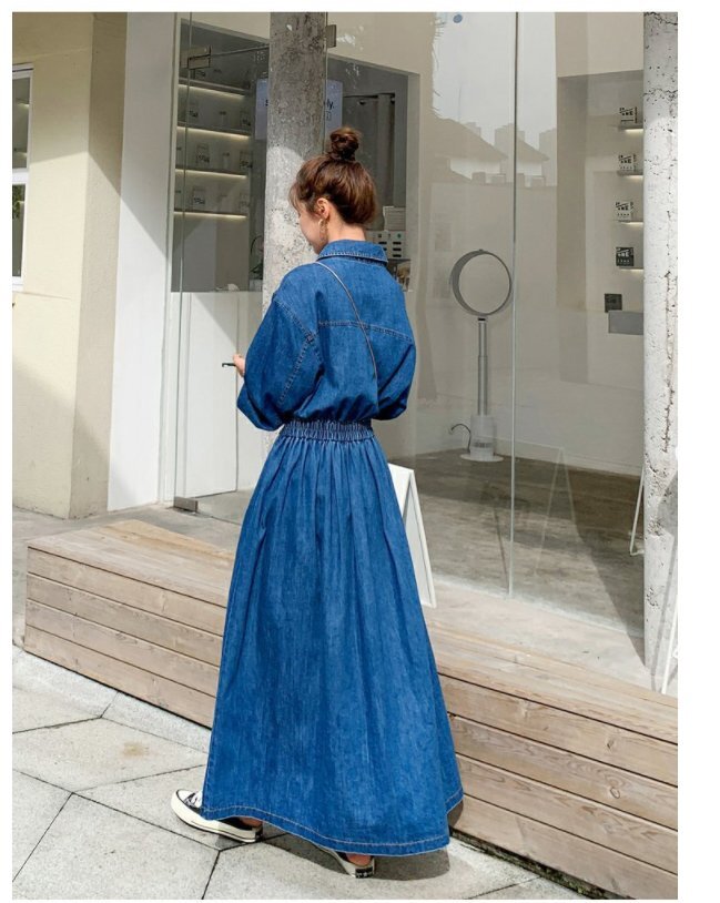 ワンピース レディース マキシワンピース デニム ロングワンピース 長袖 春 秋 シャツワンピース チュニック 着痩せ ★Lサイズ [浏览原始页面]